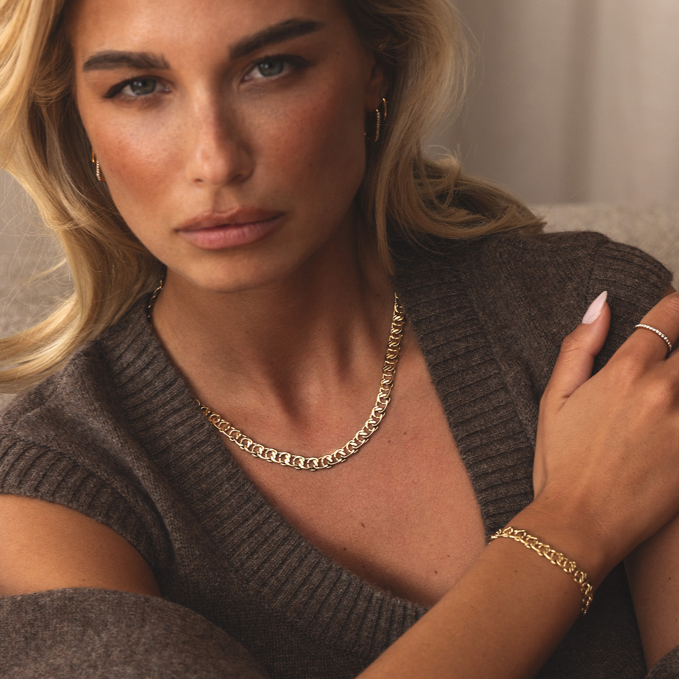 Draag gouden sieraden en horloges die warme bruintinten met subtiele elegantie laten uitkomen. Volg de trends van het seizoen met tijdloze designs en zorgvuldig afgewerkte details – perfect voor een knusse dag of een bijzondere avond.