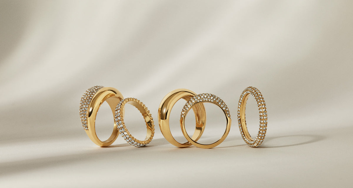 Versierde ringen in de kleuren goud en zilver. Een combinatie van klassieke elegantie en expressieve details.