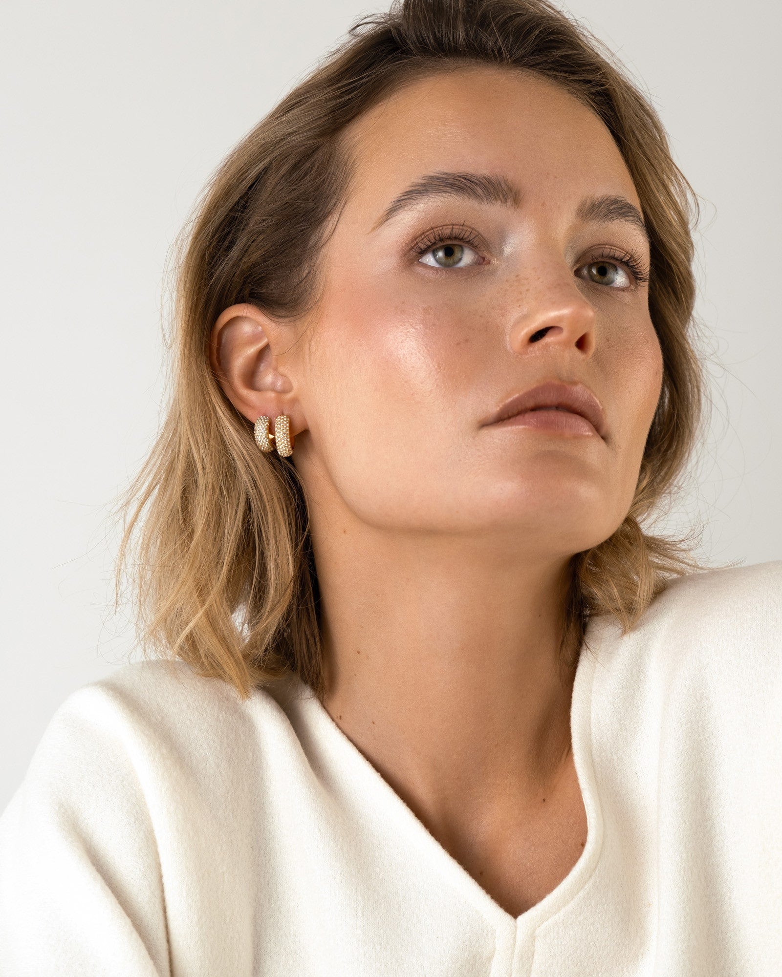 Elegante oorringen, versierd met fonkelende zirkonia’s. Gemaakt van massief roestvrij staal met een 18K goudkleurige PVD-coating, waardoor ze zowel duurzaam als waterbestendig zijn. Ze behouden hun kleur en glans in de loop der tijd.