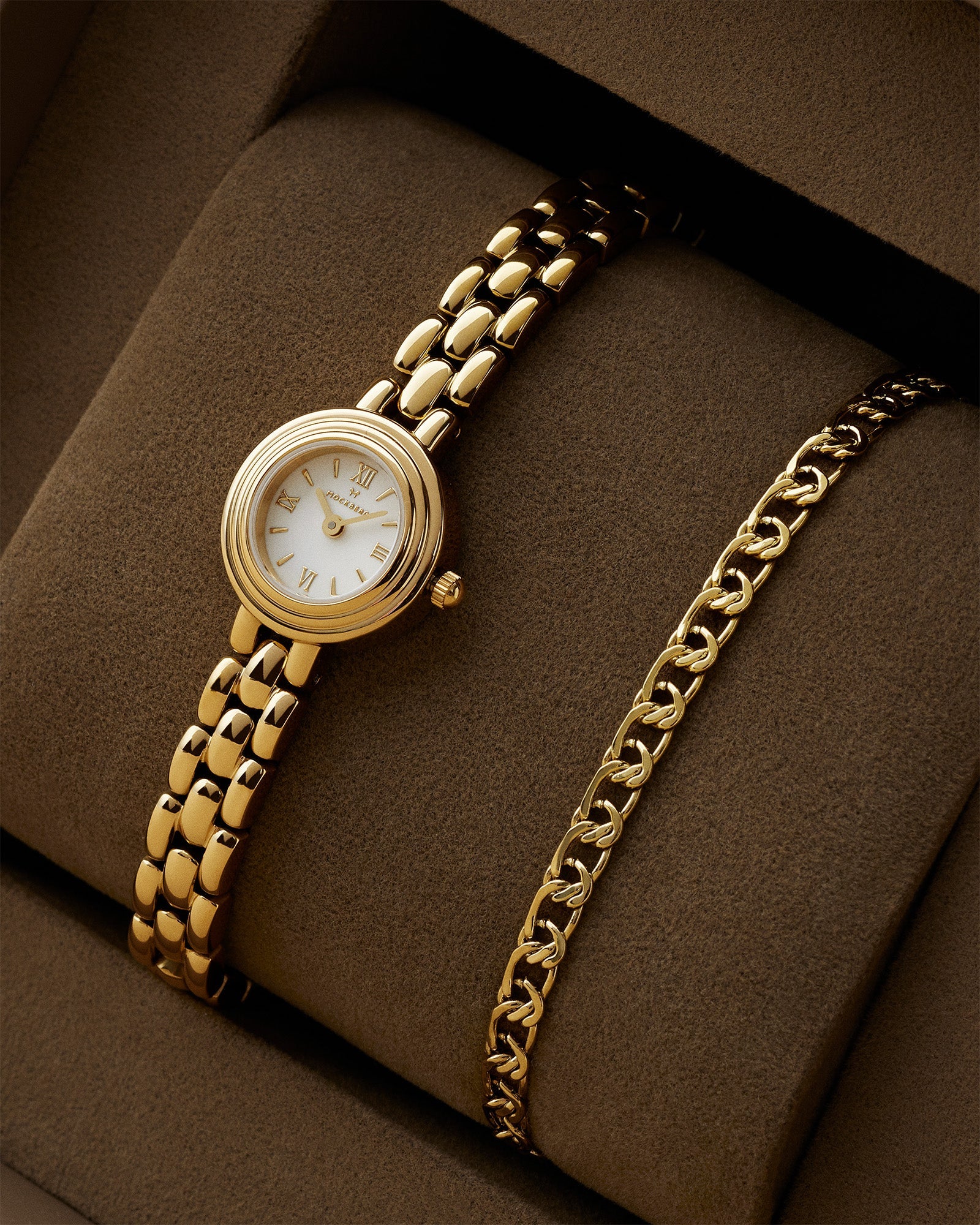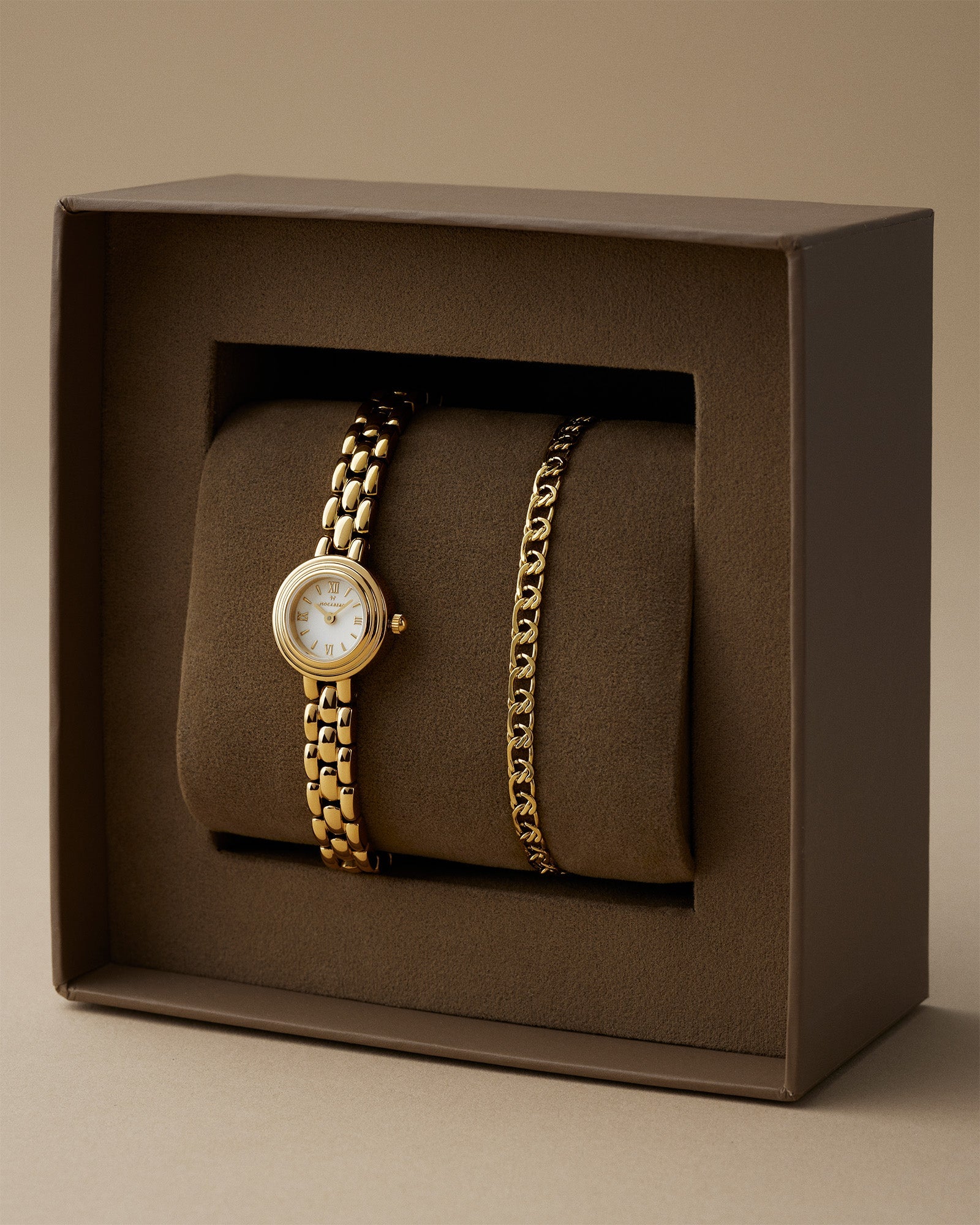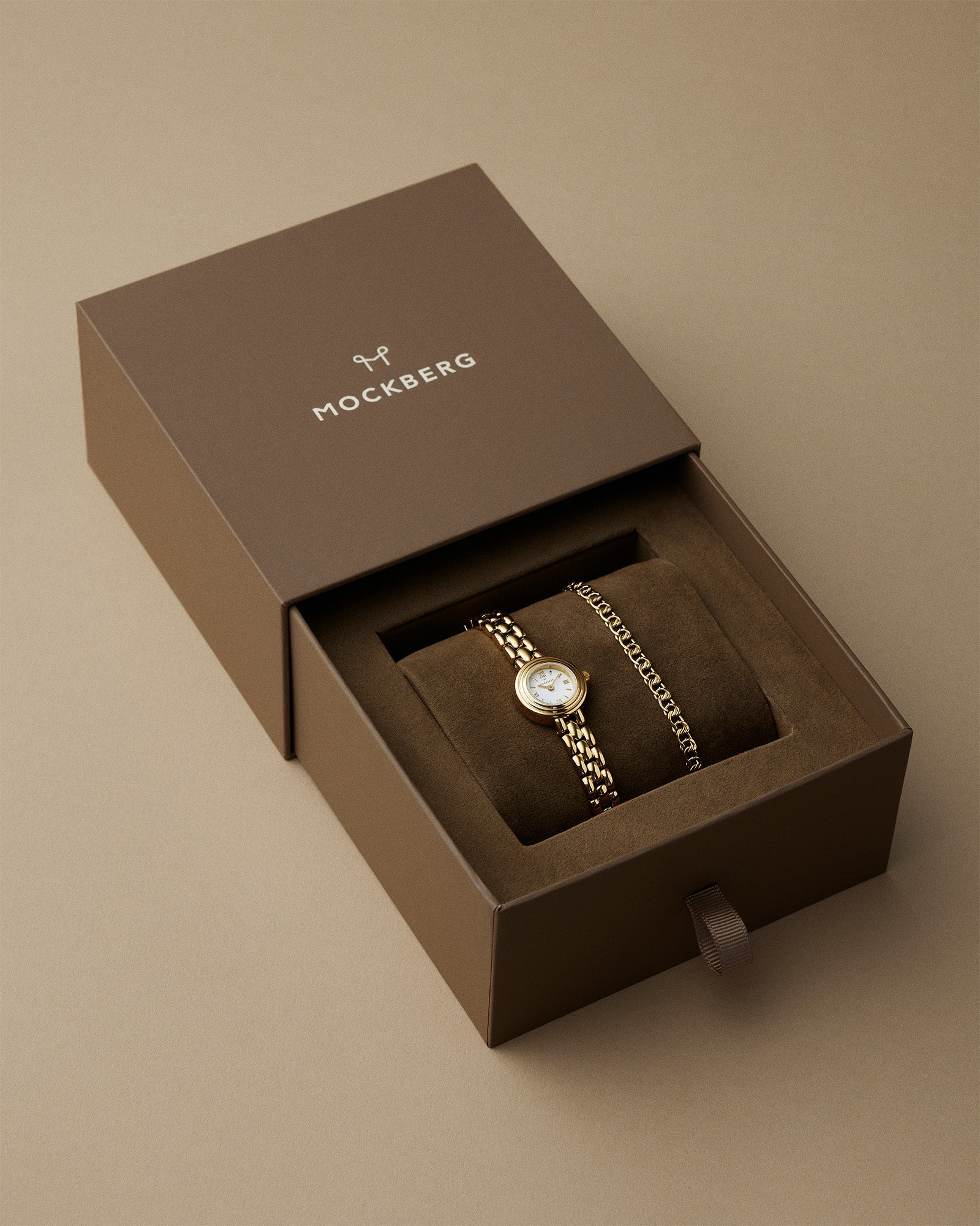 Mockberg’s gift set with the Antique watch and bracelet delivers a classic, cohesive look that suits both everyday wear and festive occasions. The combination is easy to style and enhances your outfit without being overpowering. The watch and bracelet are delivered together in a gift box.