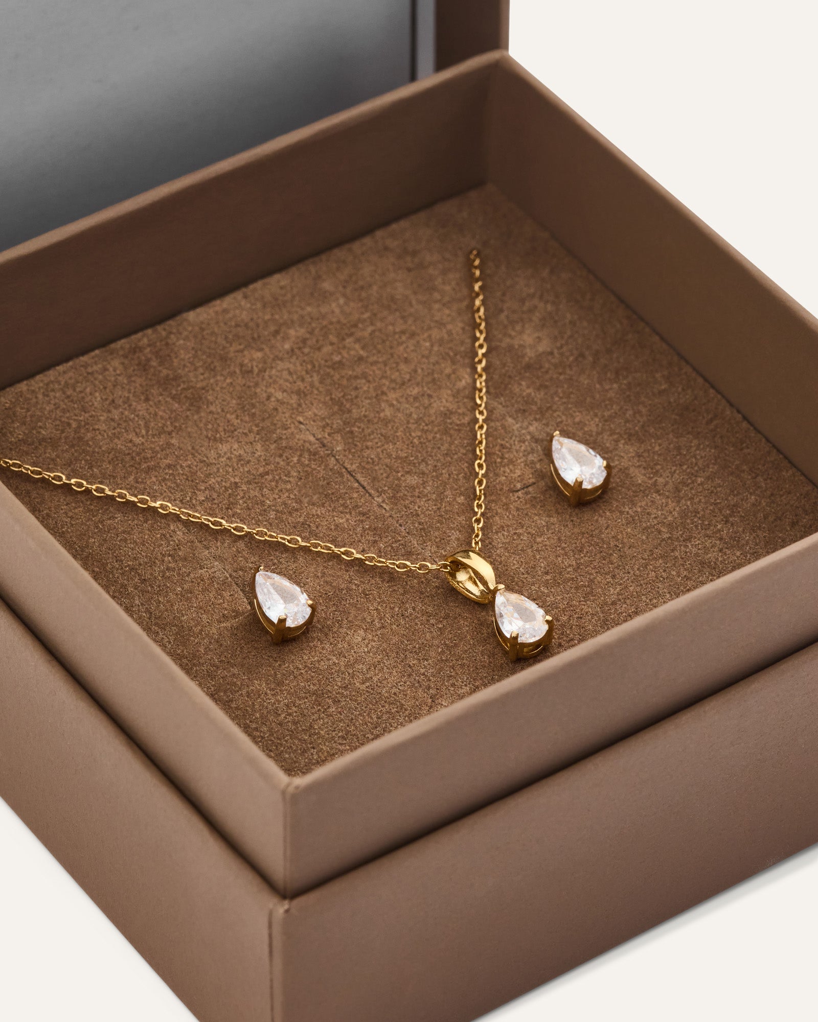 Een verfijnde set met een ketting en onze bestverkochte oorbellen. Ontworpen voor een tijdloze, klassieke uitstraling. Het perfecte cadeau voor iemand die je dierbaar is – of voor jezelf.