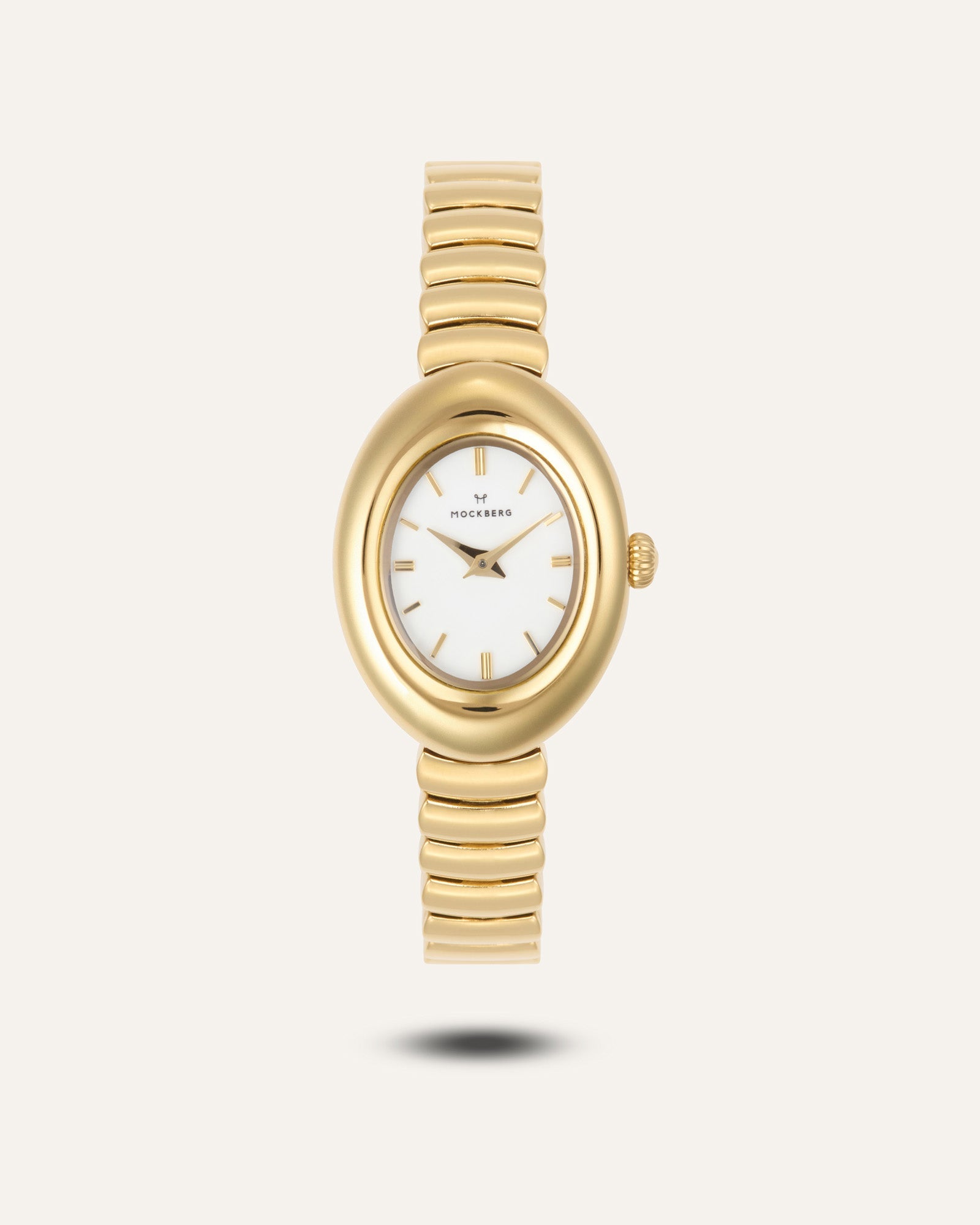 De Belle Oval Watch heeft een zacht afgeronde ovale kast en een schakelband in een gebogen ontwerp. Een horloge dat zowel verfijnd als gemakkelijk te dragen is – geschikt voor elke gelegenheid.