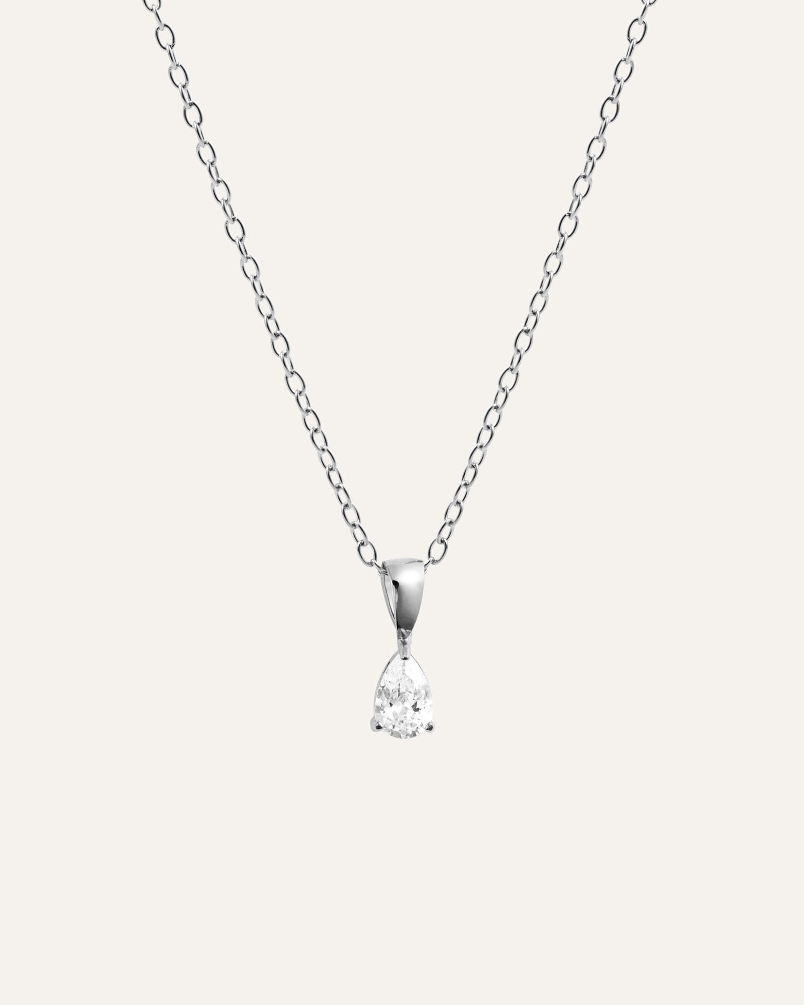 Belle White Necklace is een minimalistische ketting met een witte, peervormige steen aan een dunne ketting. Gemaakt van roestvrij staal met PVD-coating – duurzaam en waterbestendig, zodat het zijn kleur en glans behoudt.