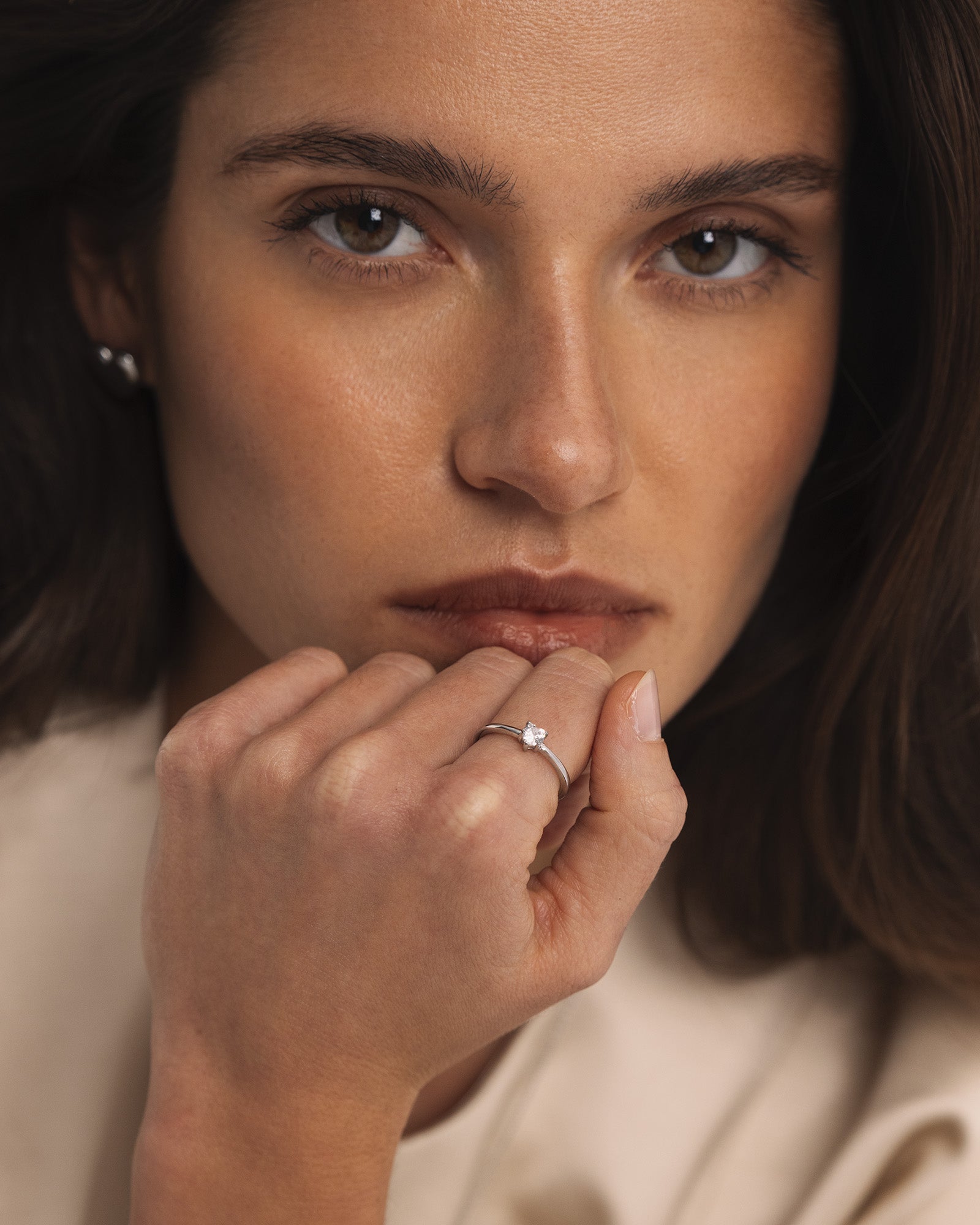 A timeless silver-toned steel ring adorned with a white cubic zirconia that captures the essence of love. Designed with a clean, minimalist expression, it’s a modern symbol of affection made to be worn every day.