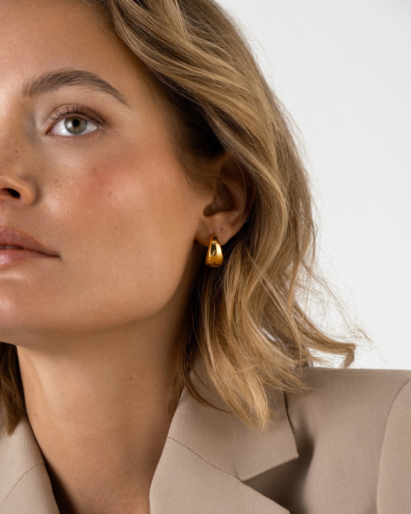 Hoop oorbellen in een duurzaam design, gemaakt van massief roestvrij staal met een 18K goudkleurige PVD-coating. Waterbestendig en slijtvast – ze behouden zowel hun kleur als elegantie in de loop der tijd.