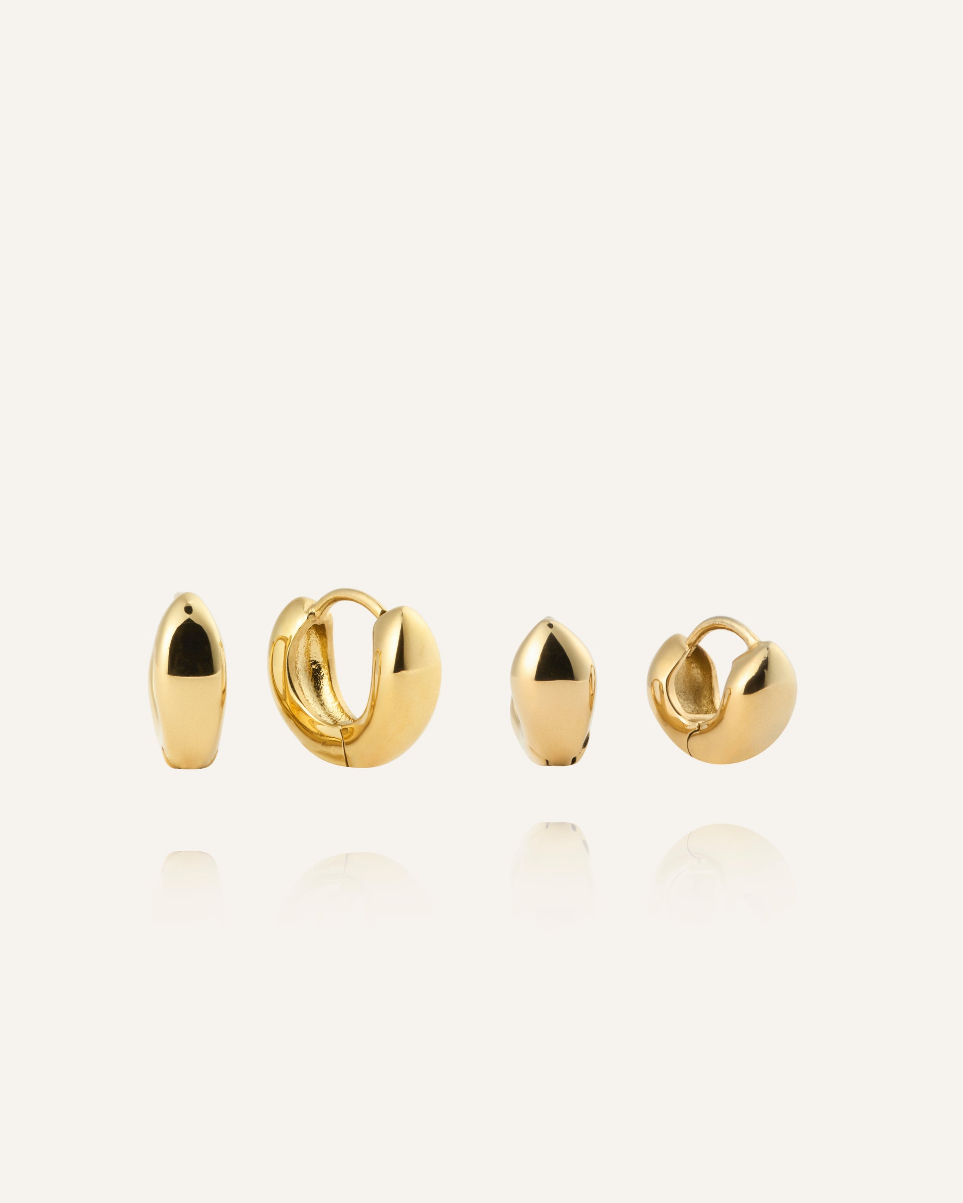 Bulky Huggies in a gold tone feature softly rounded, sculptural forms that catch the light beautifully. The compact design creates a defined yet balanced look that elevates both everyday and evening outfits. Wear them solo for a clean style or pair with studs for a personal touch.