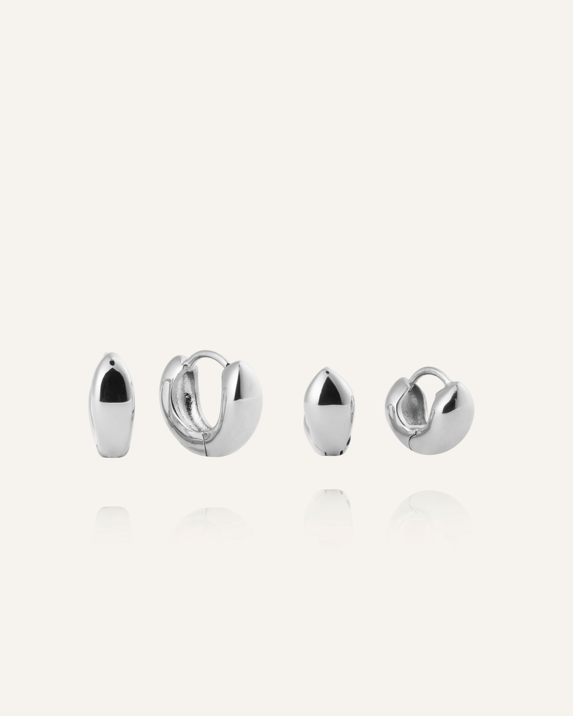 Bulky Huggies in a silver tone feature a polished, domed shape that gives a clean, refined shine. The compact size creates a modern look that works just as well with simple basics as with dressier outfits. Perfect worn solo or paired with other earrings.