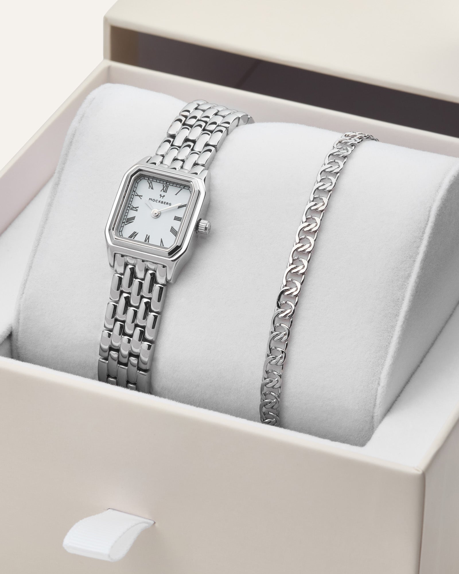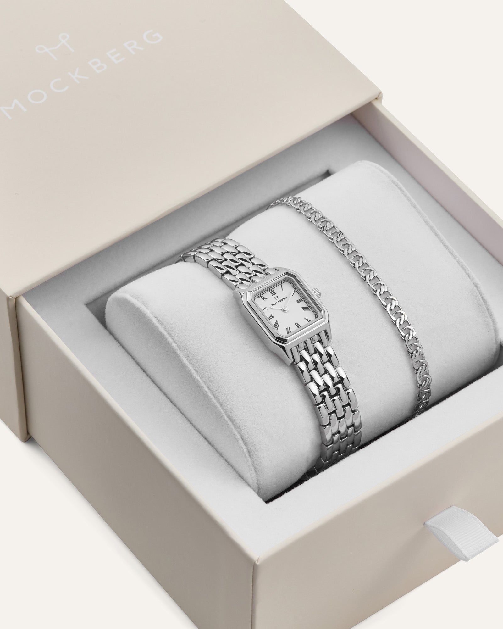 Prachtige combinatieset met onze best verkochte Classic horloge en mooie armband. De combinatie creëert de perfecte klassieke look die zowel geschikt is voor alledaags gebruik als voor feesten. Het horloge en de armband worden geleverd in een mooie doos, wat dit het ultieme kerstcadeau maakt voor iemand van wie je houdt!