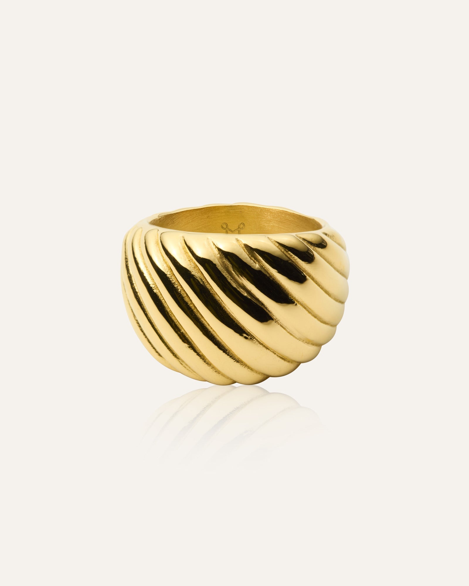 Curved Ribbed Ring combineert een klassieke vorm met een moderne stijl. Gemaakt van duurzaam staal met een 18K goudkleurige PVD-coating en een waterbestendige afwerking – stijlvol én sterk. De golvende structuur maakt de ring tot een opvallend detail dat elke look versterkt.