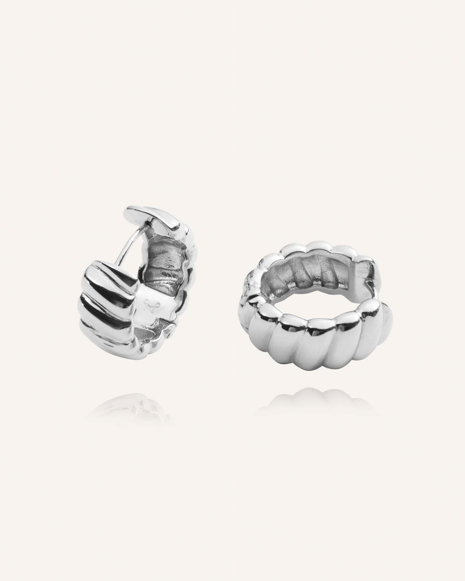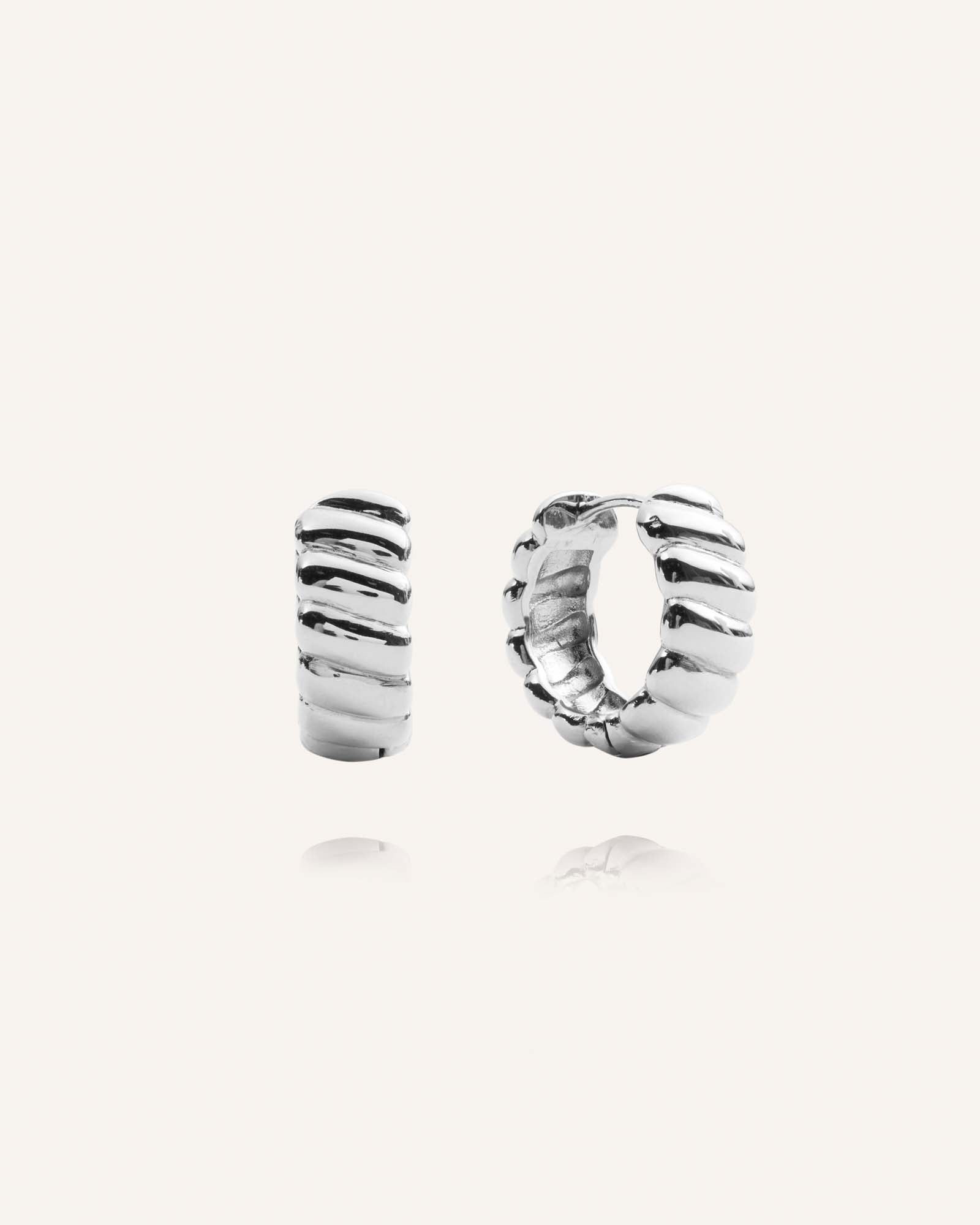 Curved Ribbed Earrings vormen de perfecte balans tussen klassieke details en moderne stijl. Ze zijn gemaakt van duurzaam staal, zijn waterbestendig en ontworpen om je te vergezellen in zowel dagelijkse momenten als speciale gelegenheden. Het geribbelde oppervlak voegt een unieke textuur toe die het licht subtiel en elegant weerkaatst. Een sieraad dat je persoonlijke stijl versterkt en een vleugje luxe aan elk moment toevoegt.