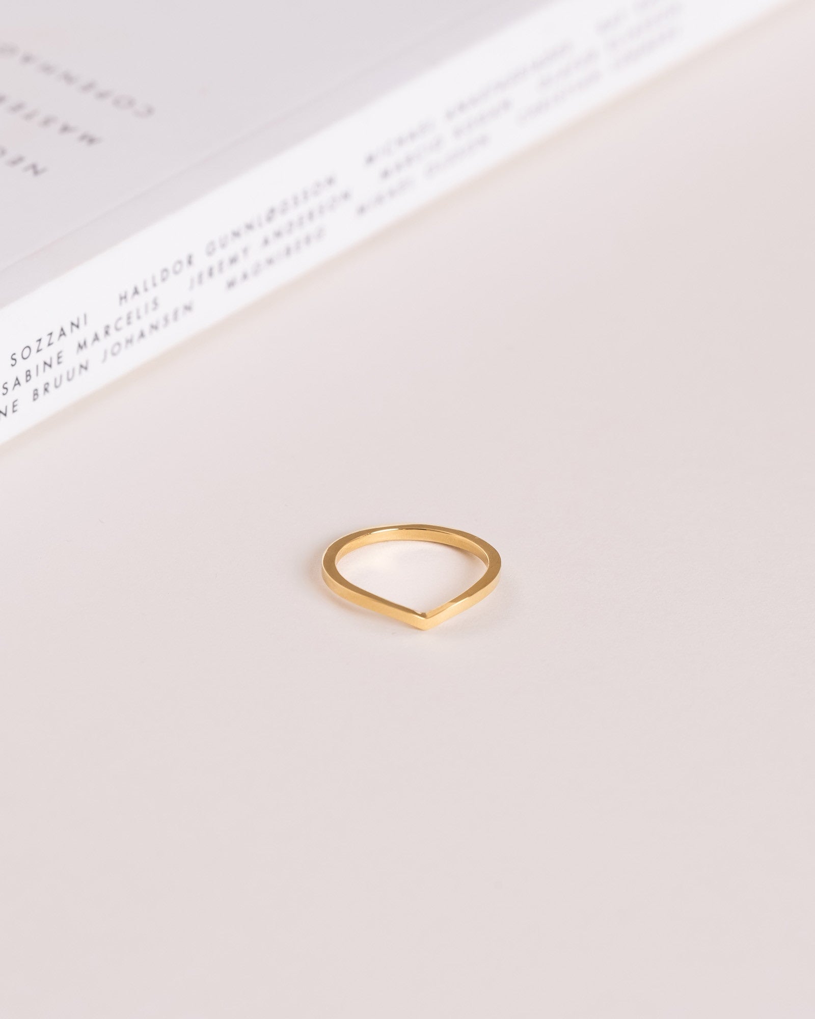 De Honest Ring is een dunne, elegante ring met een V-vormig ontwerp. Gemaakt van massief roestvrij staal met een 18K goudkleurige PVD-coating – waterbestendig en duurzaam. Draag hem elke dag – zwem, douche en sport zonder je zorgen te maken over verkleuring.