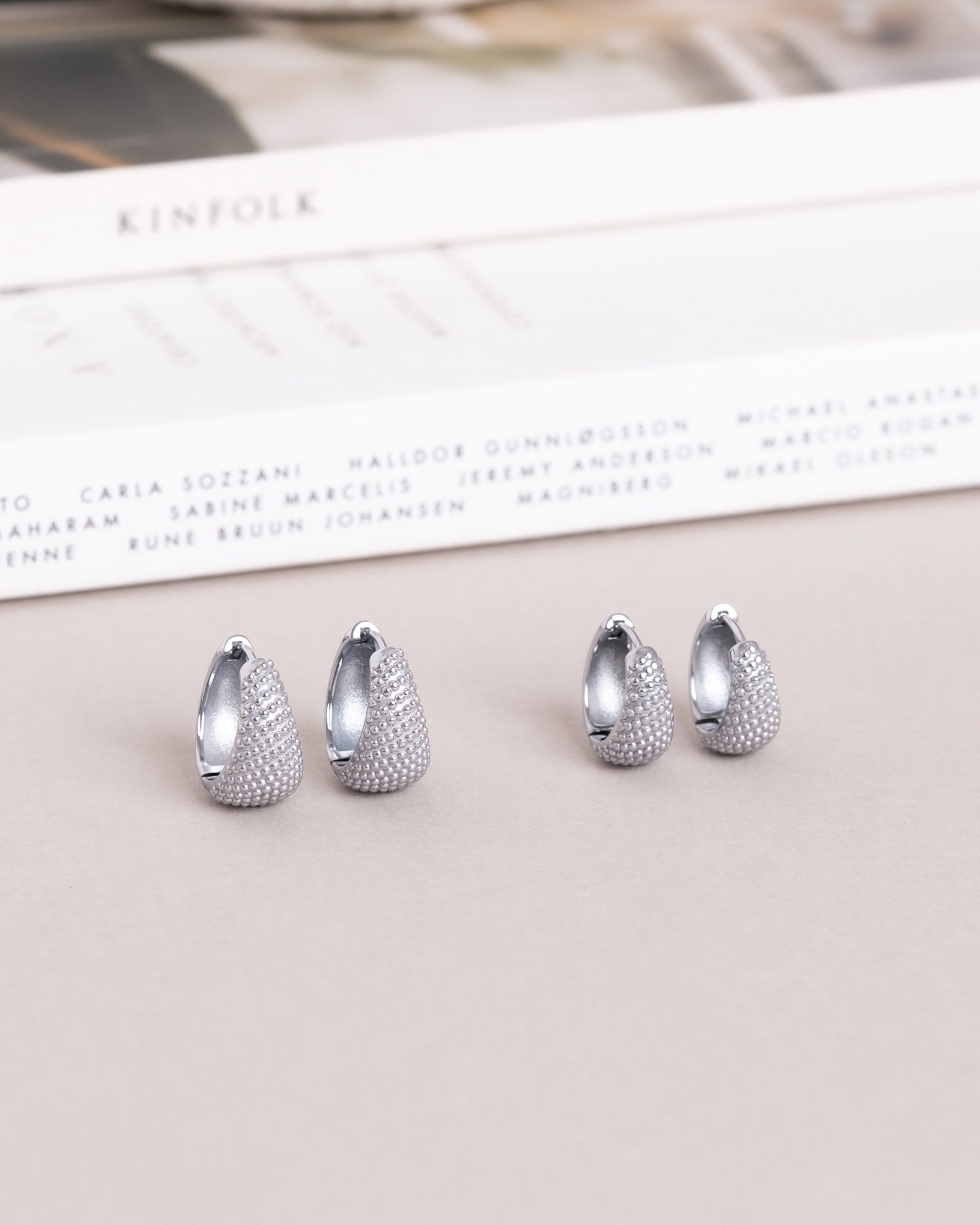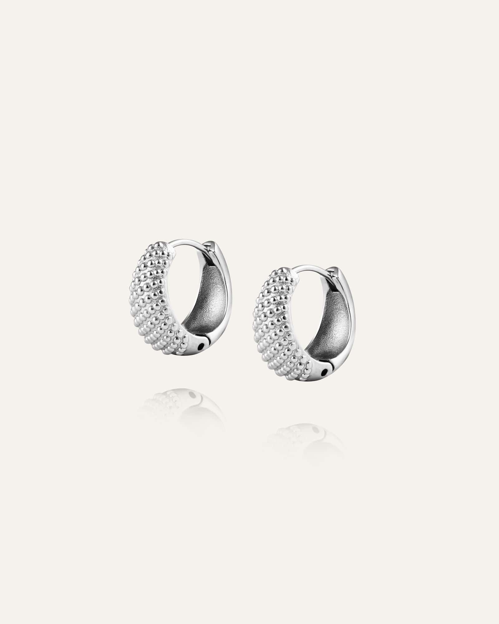 Honey Hoops hebben een uniek ontwerp met een gestructureerd patroon dat ze onderscheidt van de klassieke Bold Hoops. Gemaakt van massief roestvrij staal – duurzaam en waterbestendig.