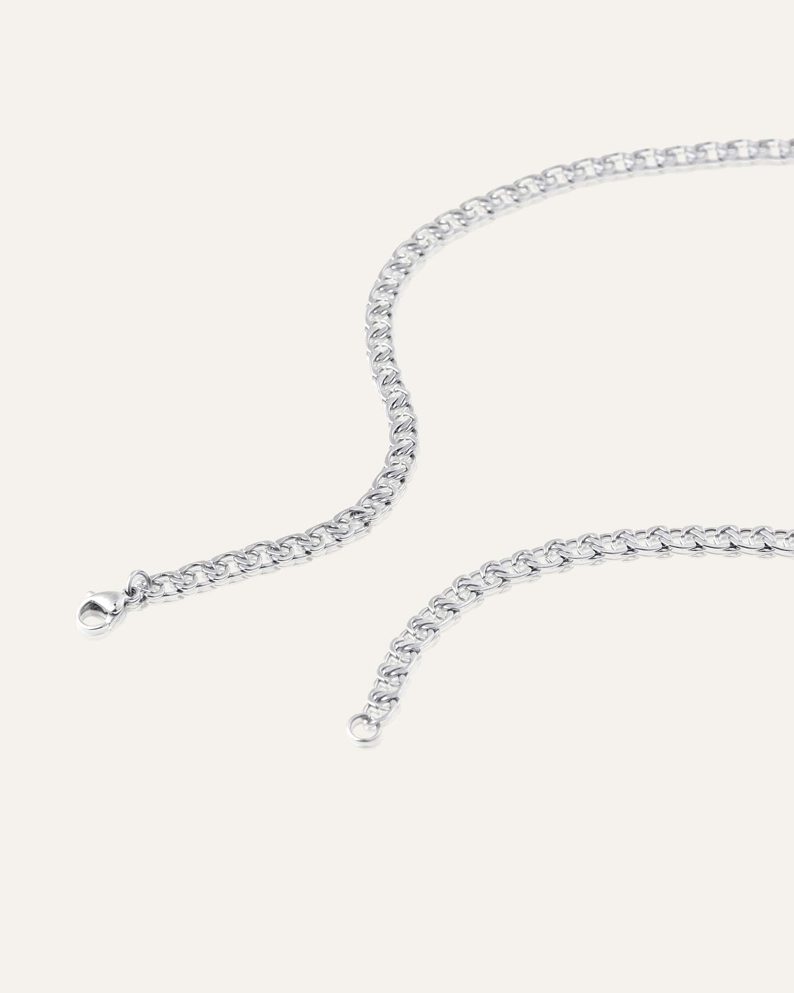 Infinity Necklace is een klassieke ketting met een curb chain-design. Gemaakt van roestvrij staal met een PVD-coating – duurzaam en waterbestendig, en behoudt zijn kleur en glans langdurig. Het verlengstuk kan eenvoudig worden verwijderd voor een aangepaste pasvorm.