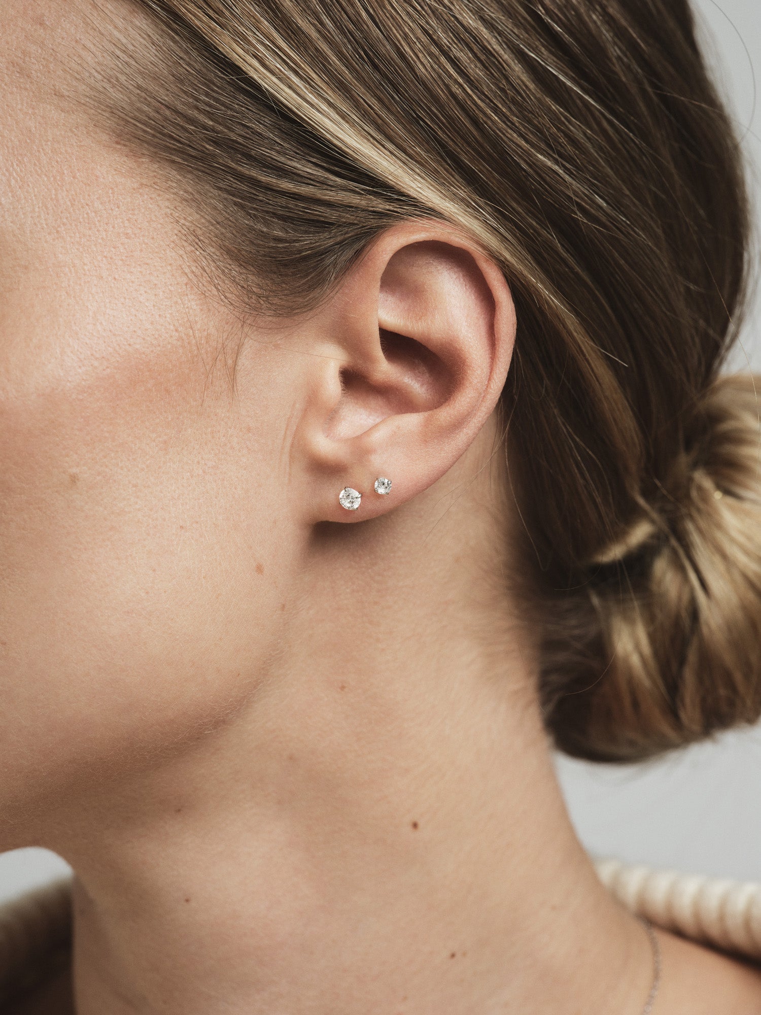 Tijdloze elegantie in een minimalistisch ontwerp. Jolie White Studs zijn subtiele, sprankelende oorbellen met witte zirkonia. Gemaakt van roestvrij staal voor langdurige duurzaamheid en glans.