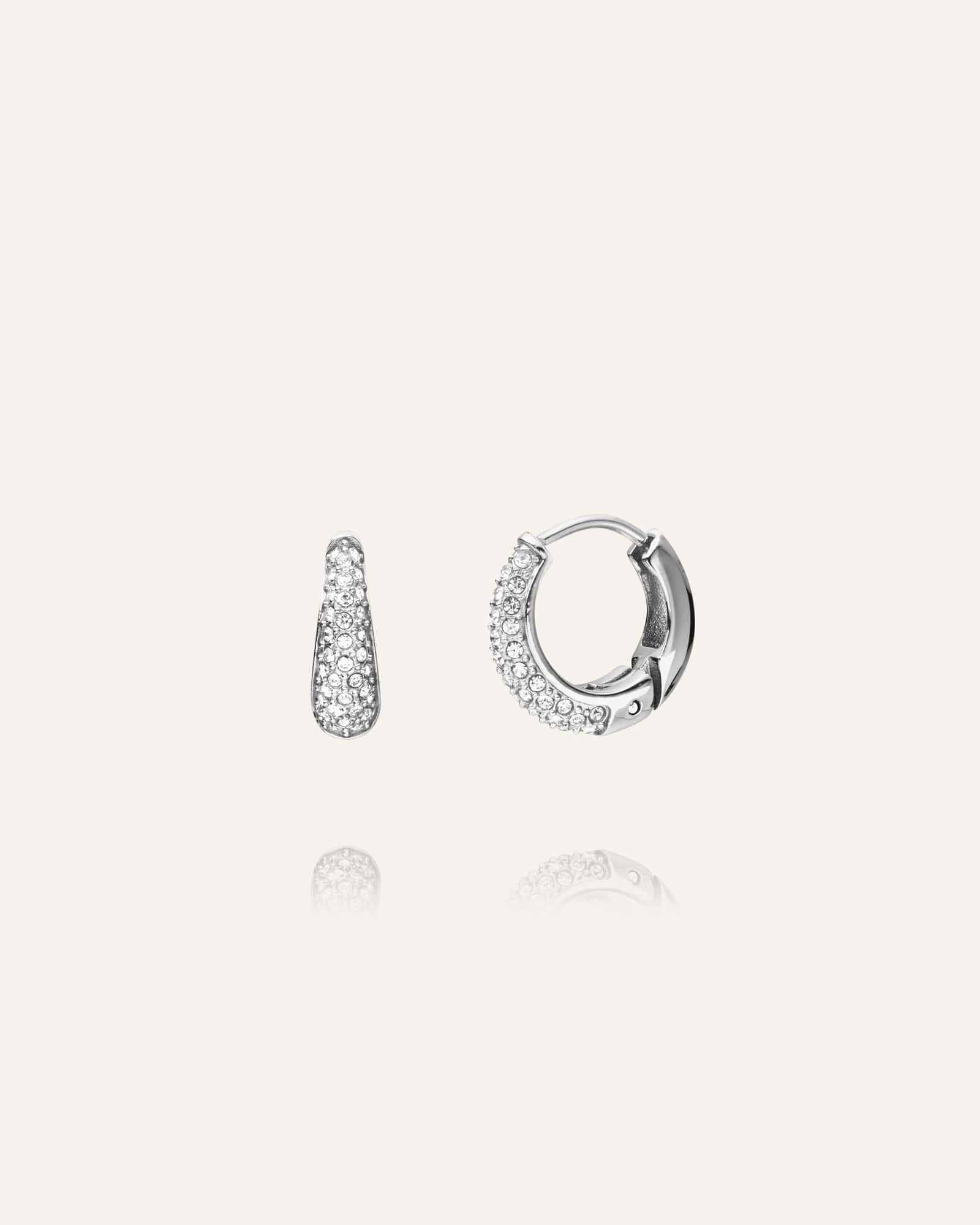 Subtiel van formaat, maximaal in elegantie. De Pavé Precious Hoops zijn versierd met fonkelende cubic zirconia-stenen en vervaardigd uit roestvrij staal. Duurzaam en waterbestendig, zodat ze hun kleur en glans langdurig behouden.