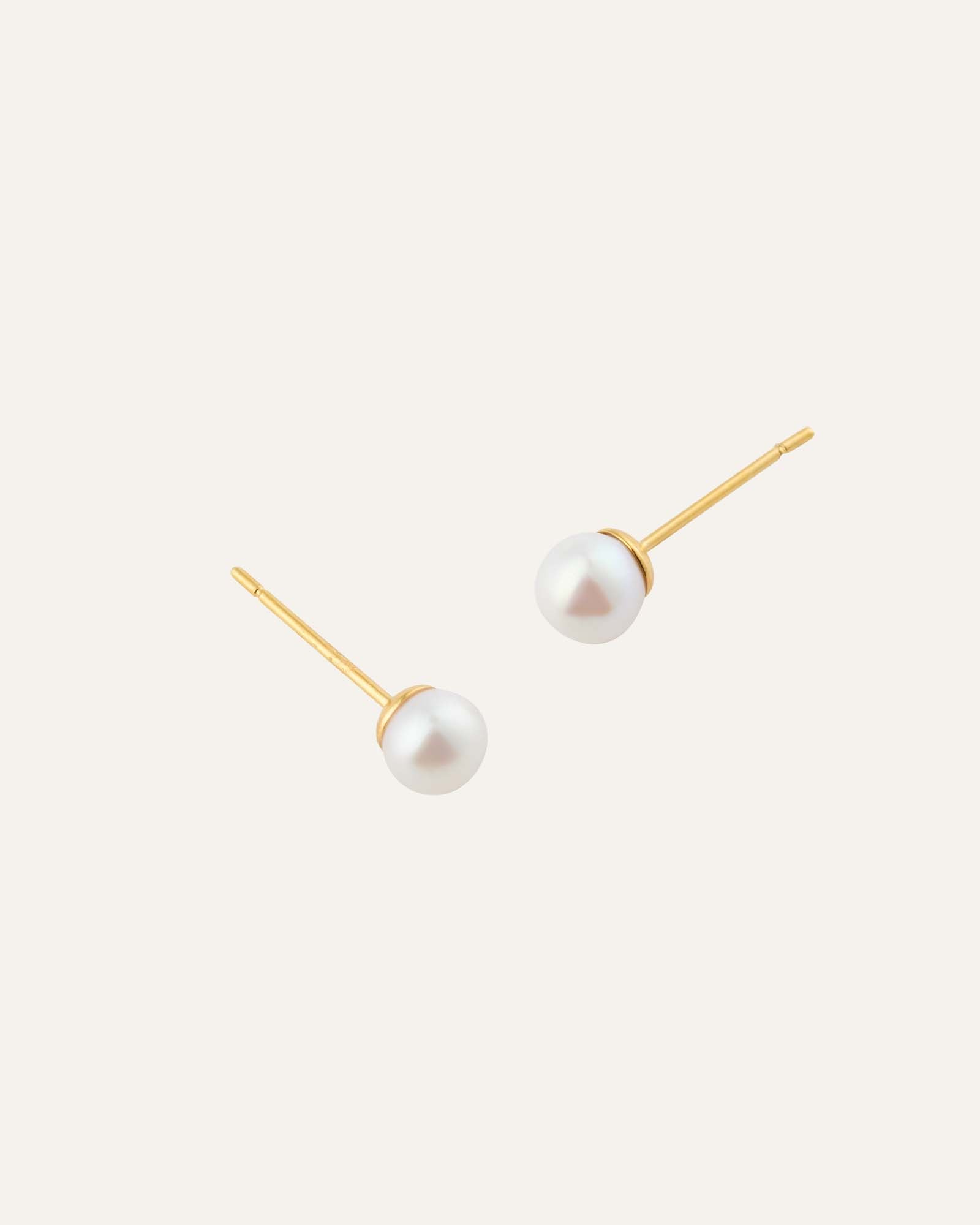 Pearl Gold Studs combine a freshwater pearl with a stainless steel post plated with 18K gold PVD. The warm gold tone enhances the pearl’s natural luster, creating a soft glow near the face. Thanks to the durable plating, the earrings resist everyday wear and retain their shine over time. Ideal to wear solo or paired with smaller studs.