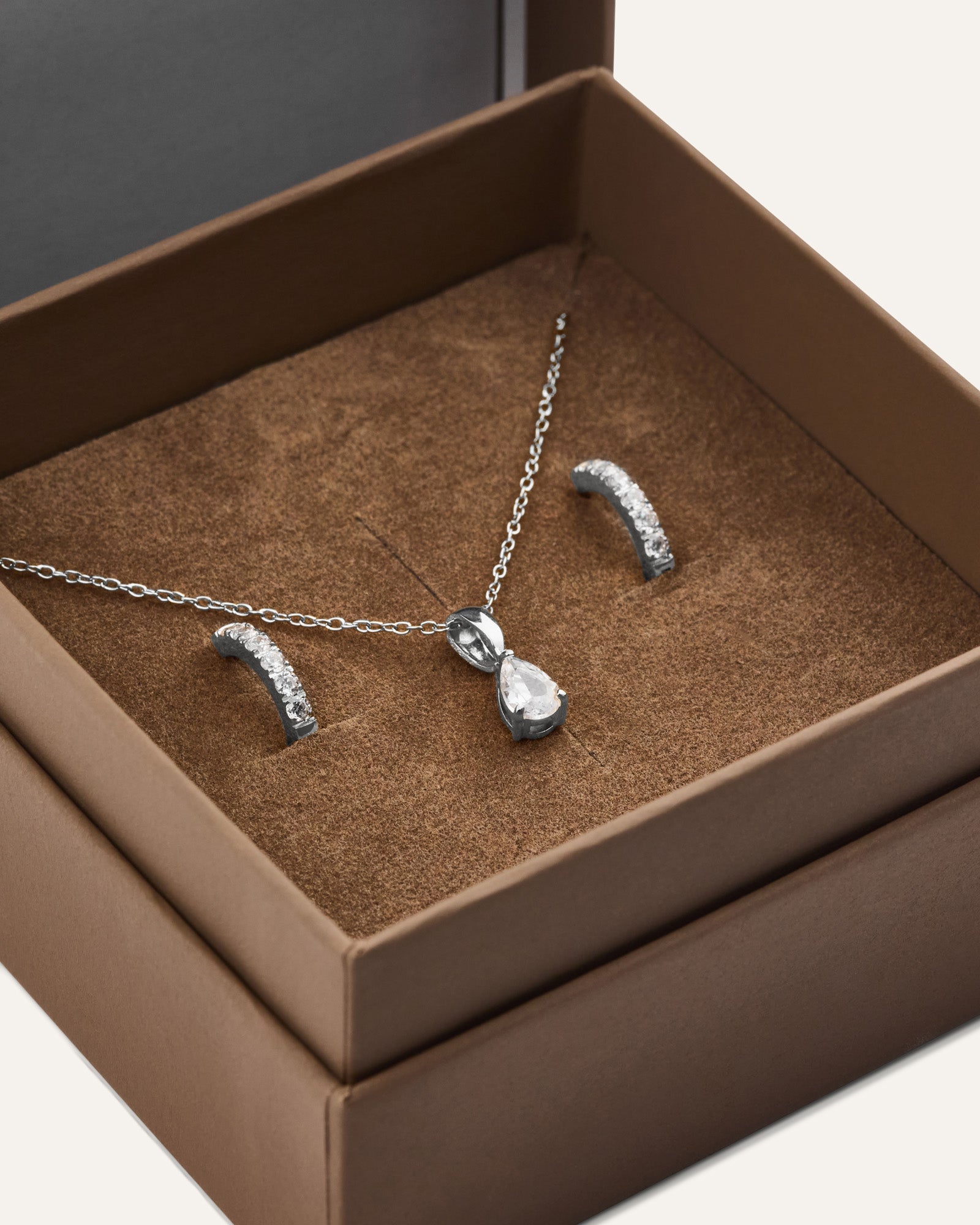 Een stijlvol setje met een ketting en onze bestverkopende oorbellen. Ontworpen om een tijdloze, klassieke look te creëren. Het perfecte cadeau voor een dierbare – of voor jezelf.
