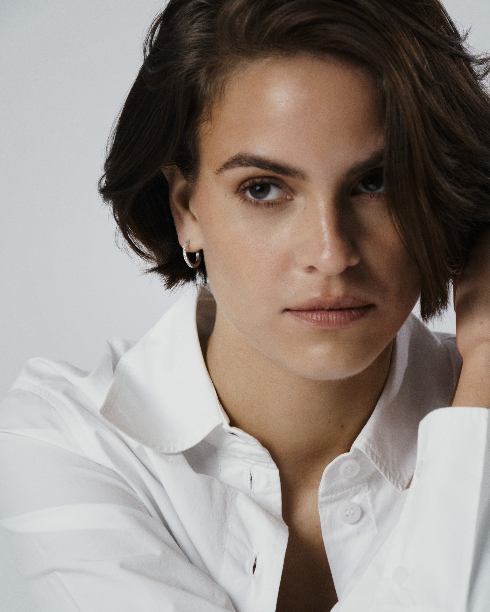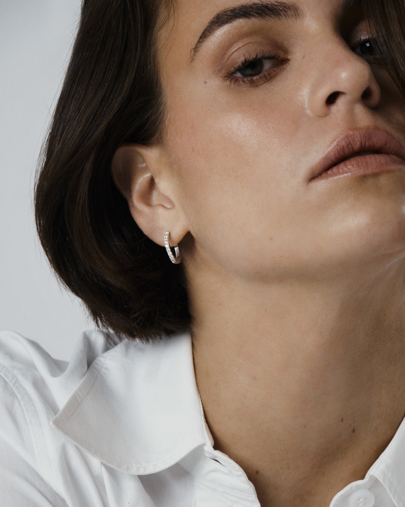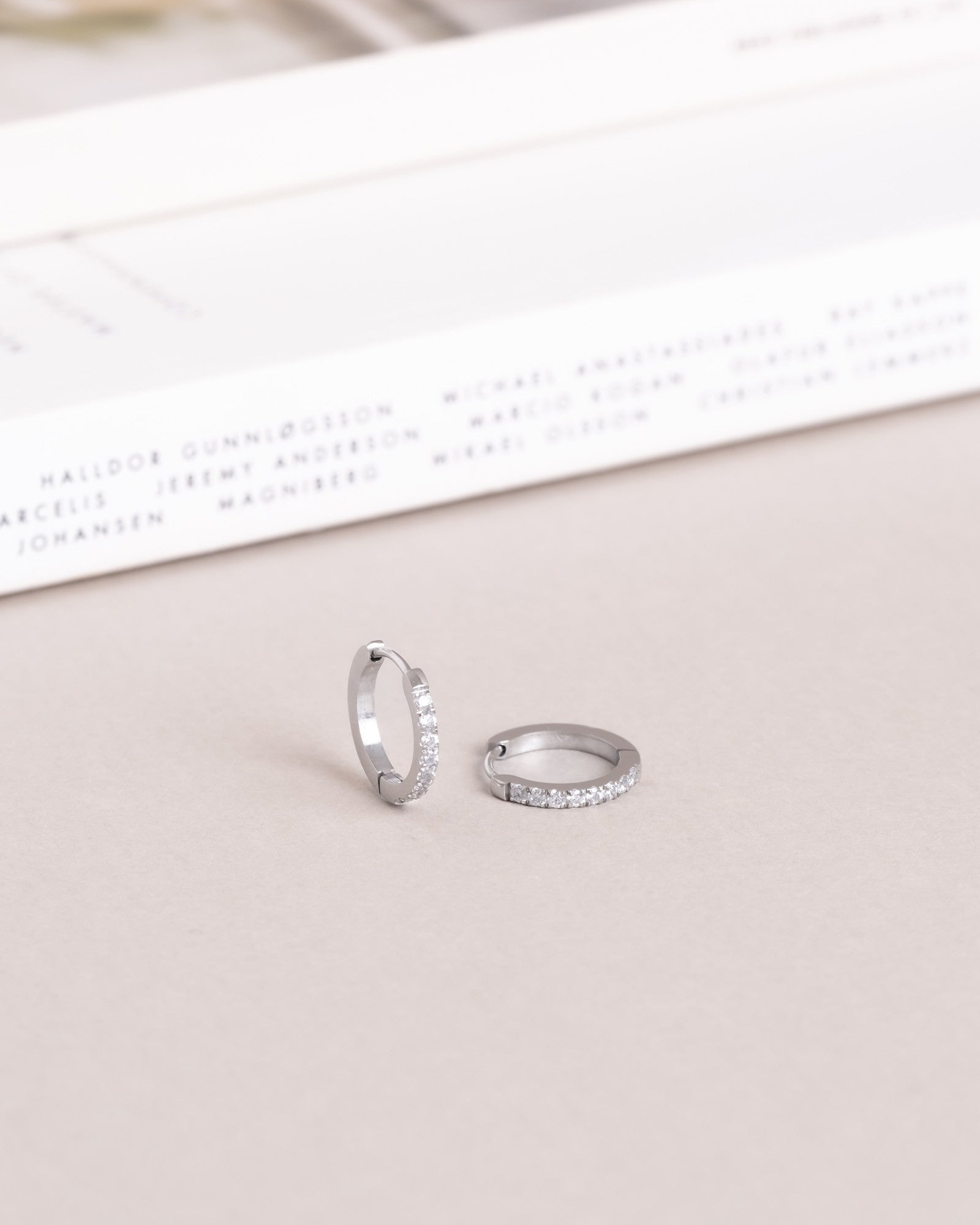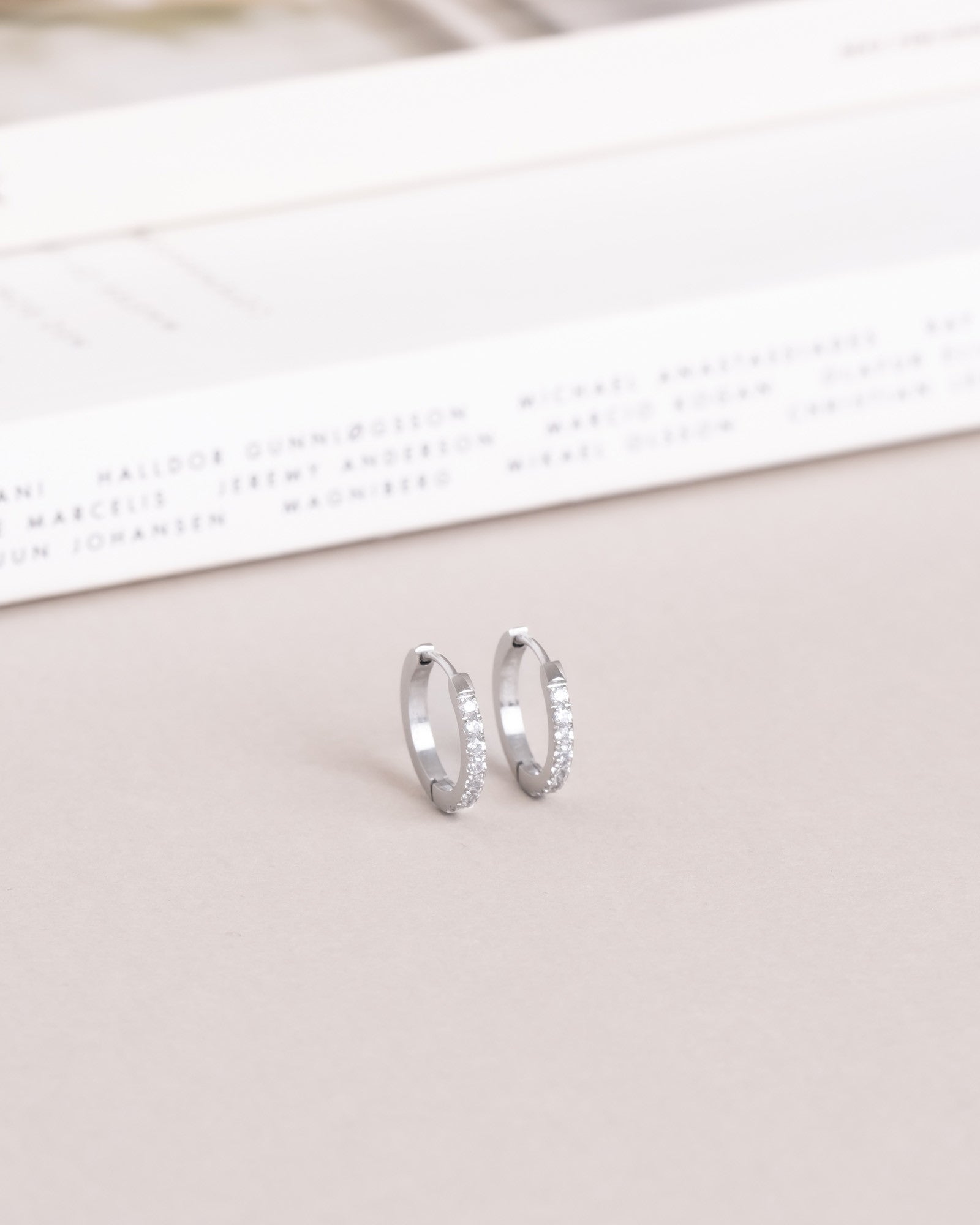 Tijdloze hoops met witte zirkonia-stenen, vervaardigd uit massief roestvrij staal. Duurzaam en waterbestendig – ze behouden hun kleur en elegantie in de loop van de tijd. Perfect te combineren met onze Classic Hoops.