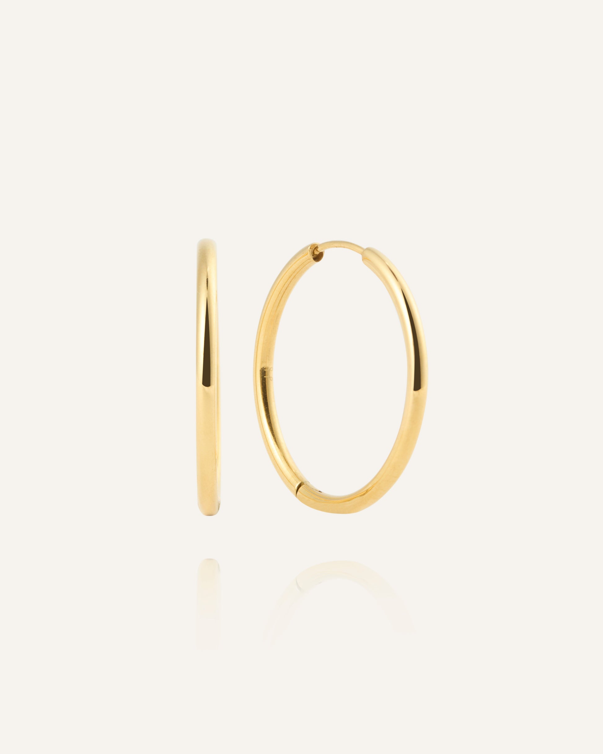 Slim Gold Hoops feature a thin, softly rounded shape that shimmers with a warm gold tone. The timeless design offers a clean look and is easy to wear and style from day to night. Wear them solo for a pared-back style or pair with other earrings for a personal touch.