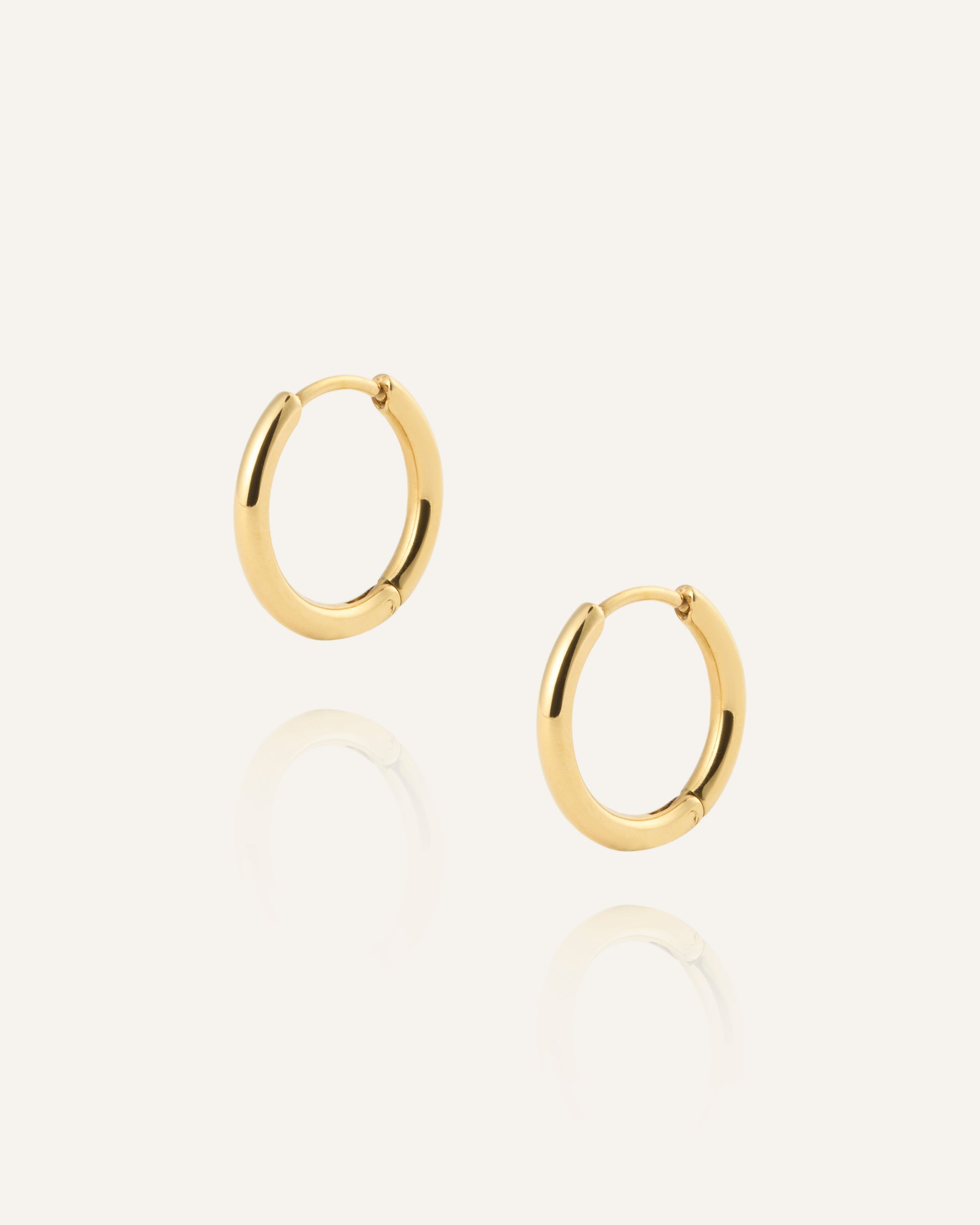 Slim Gold Hoops feature a thin, softly rounded shape that shimmers with a warm gold tone. The timeless design offers a clean look and is easy to wear and style from day to night. Wear them solo for a pared-back style or pair with other earrings for a personal touch.