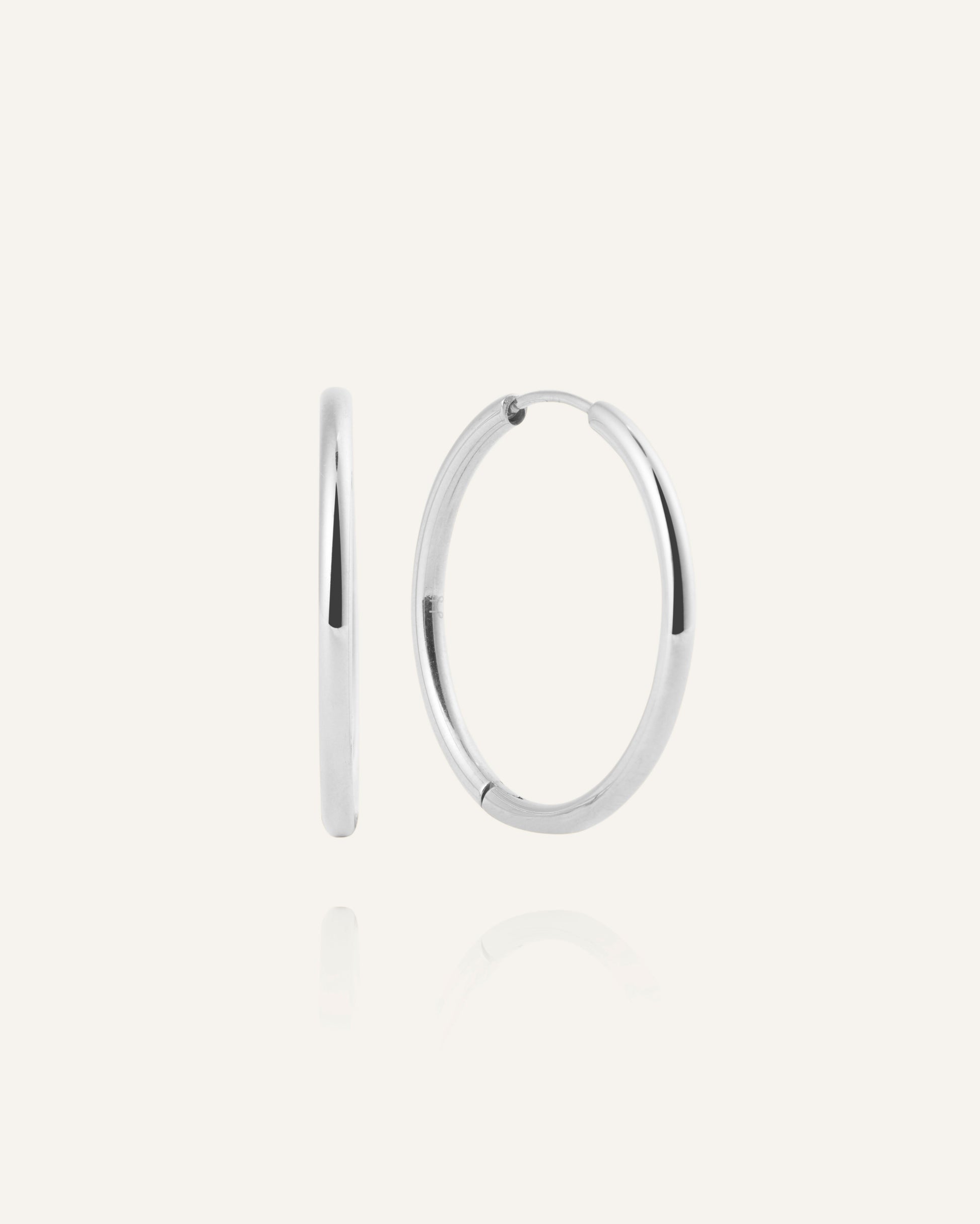 Slim Steel Hoops feature a slender, elegant profile that catches the light in a crisp silver tone. The pared-back design delivers a clean, refined finish that works just as well solo as layered with other earrings.