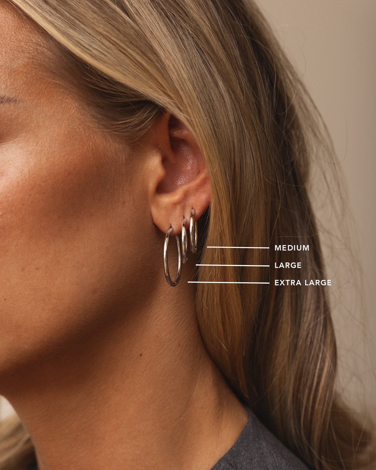 Slim Steel Hoops feature a slender, elegant profile that catches the light in a crisp silver tone. The pared-back design delivers a clean, refined finish that works just as well solo as layered with other earrings.