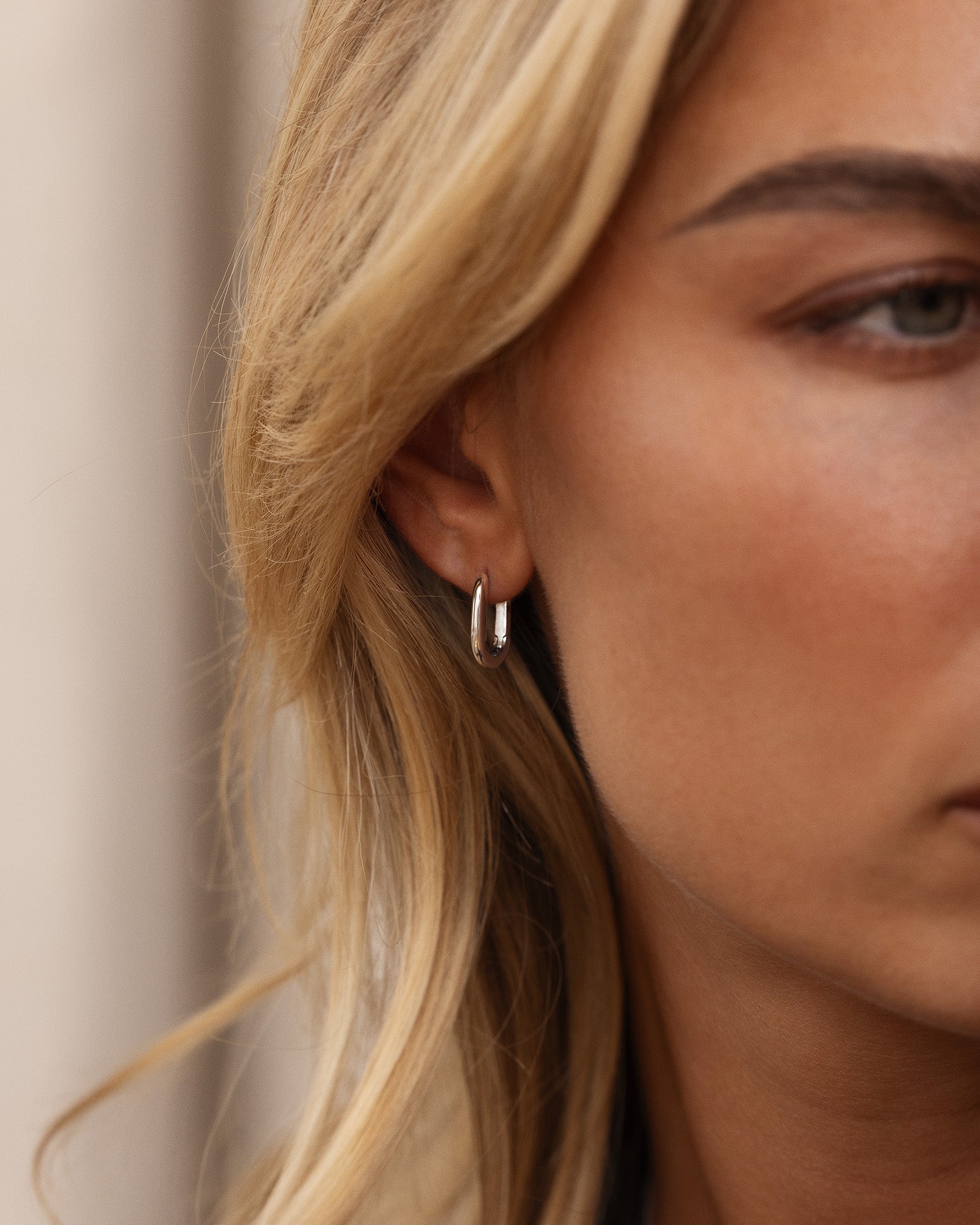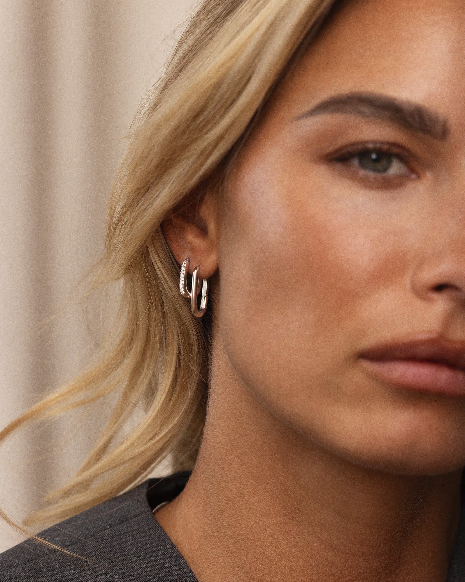 Slim Steel U-Hoops give a crisp, silver-toned shine. The pared-back U-shape creates a clean, refined finish that elevates both simple basics and more dressed-up looks.