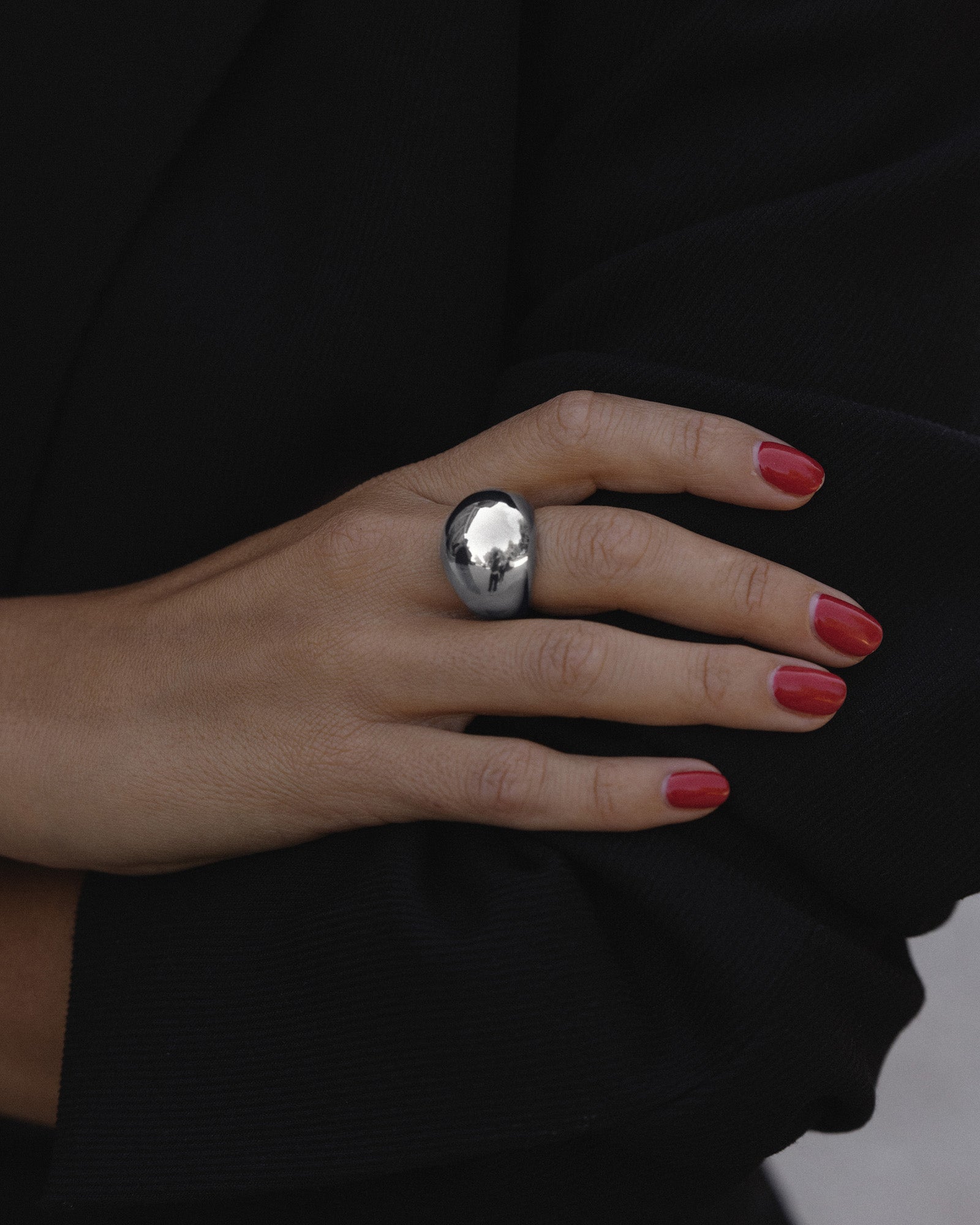 Sonja Ring on leveä ja sileäpintainen statement-sormus, jossa on pyöristetty muoto ja kiiltävä pinta. Sormus on saanut inspiraationsa Sonja Kovalevskajasta – ensimmäisestä naispuolisesta matematiikan professorista, joka nimitettiin virkaan vuonna 1884. Hänen uraauurtava työnsä ja saavutuksensa miesvaltaisessa akateemisessa maailmassa toimivat voimakkaana inspiraationa meille kaikille. Sonjan älykkyys ja sinnikkyys muistuttavat meitä siitä, että esteitä voidaan murtaa ja historiaa voidaan muuttaa. Käytä Sonja-sormusta kunnianosoituksena naisten johtajuudelle ja älykkyydelle – ja anna sen olla rohkeuden ja menestyksen symboli missä tahansa tilanteessa. Valmistettu massiivisesta ruostumattomasta teräksestä, jossa on kestävä PVD-pinnoite – vedenkestävä ja kestävä. Käytä sitä joka päivä – ui, käy suihkussa ja treenaa ilman huolta värin haalistumisesta.