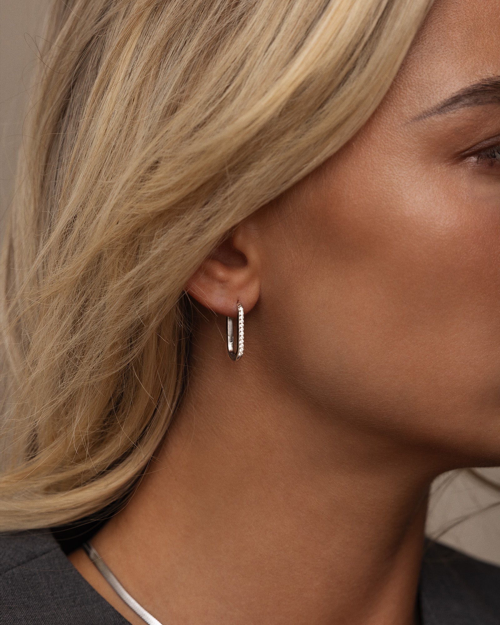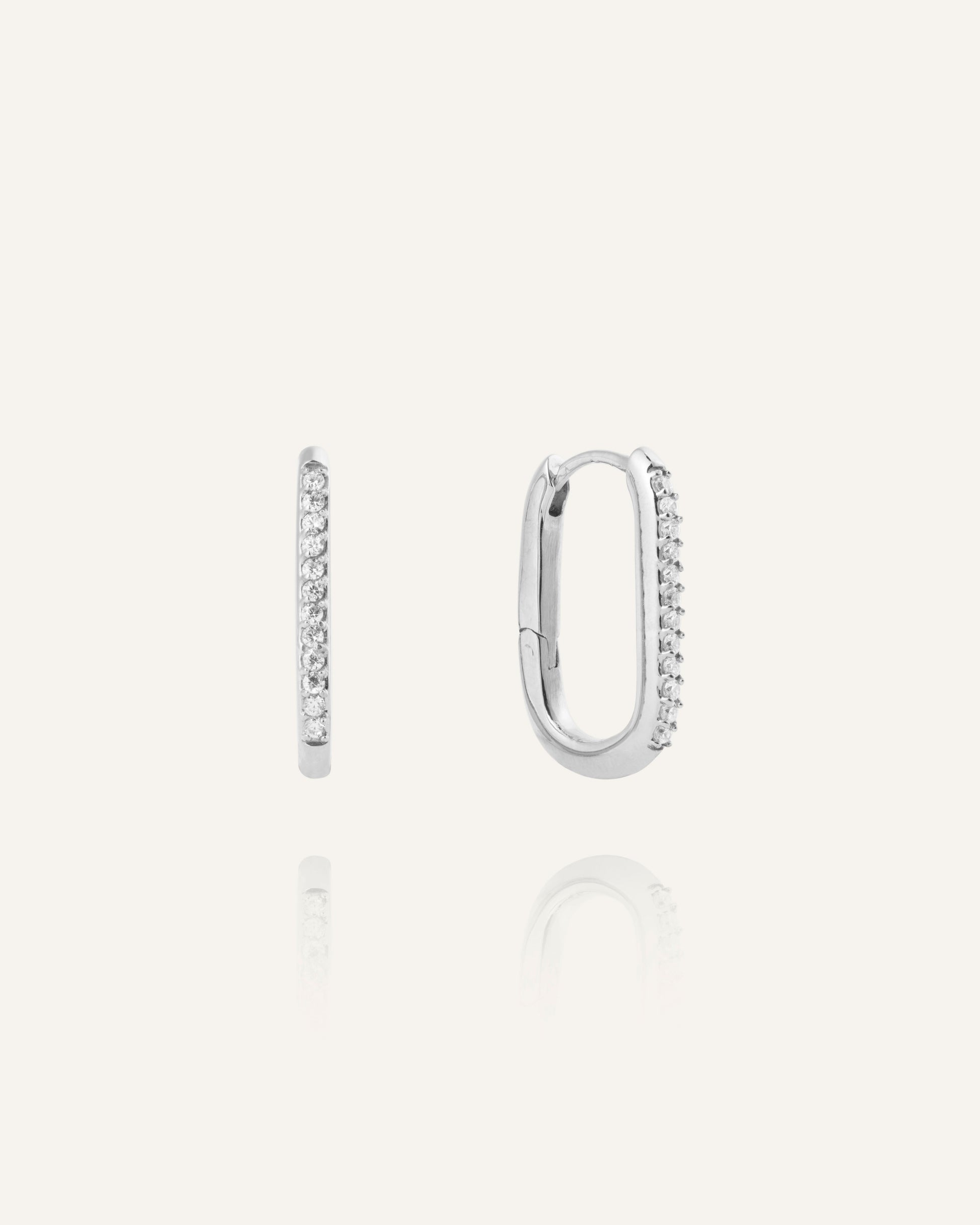 Sparkle U-Hoops shimmer in a silver tone. The slim U-shape with white cubic zirconia creates a clean, sparkling look in a neat size. A refined finish that works for any occasion.