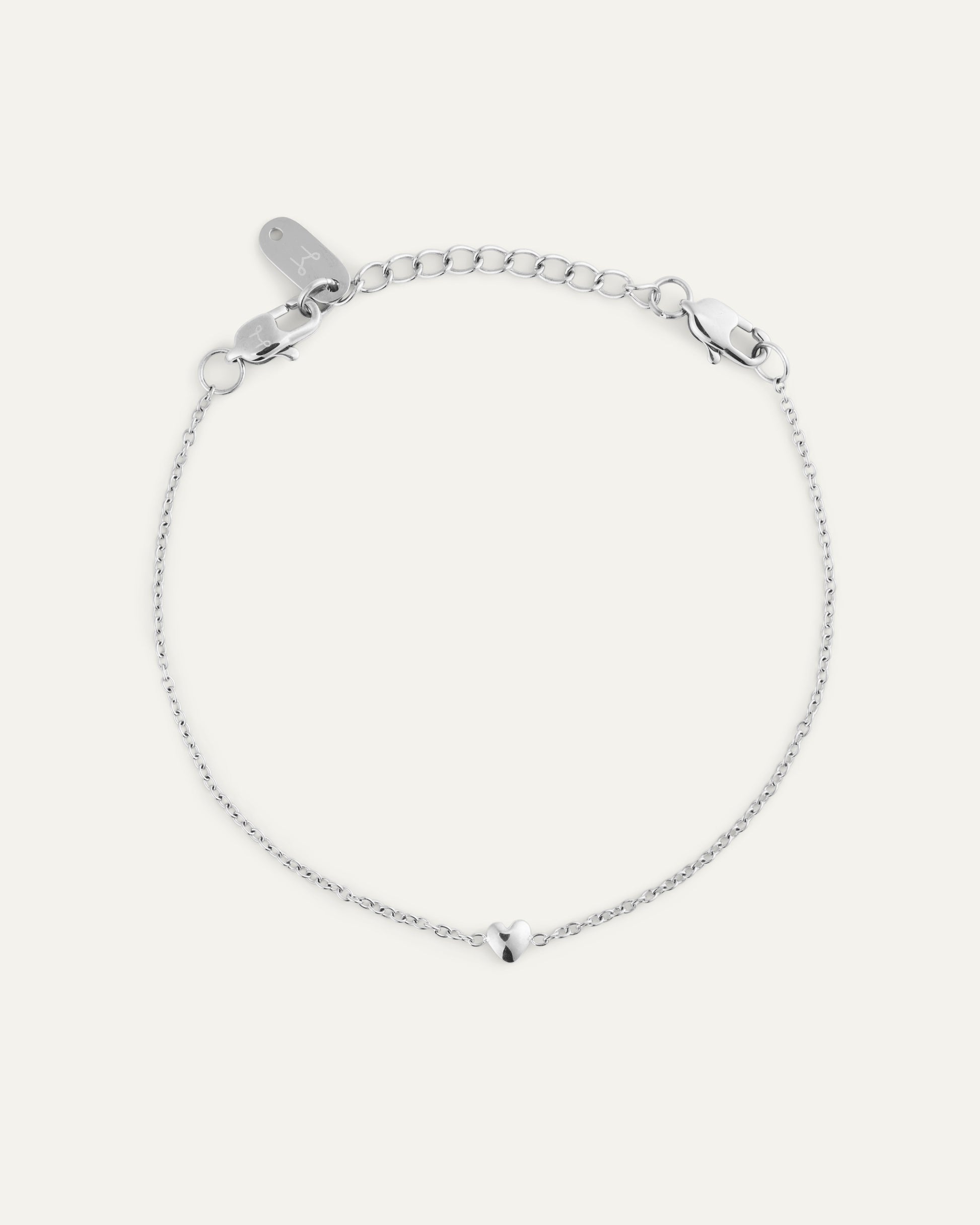 A delicate steel bracelet featuring a subtle heart detail that symbolizes love in its purest form. Designed to sit elegantly on the wrist, it’s a timeless piece made to be worn close to the heart.