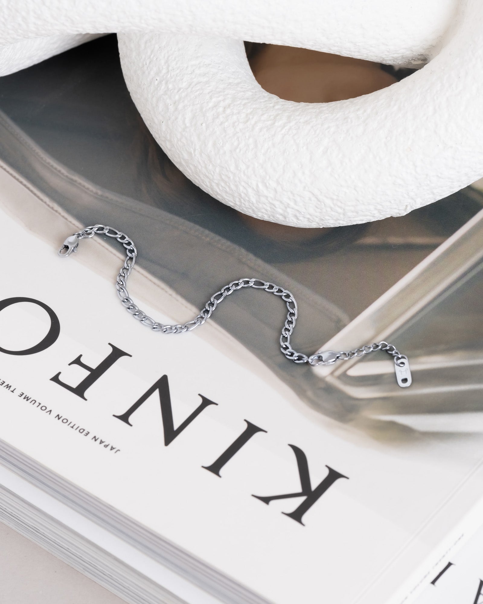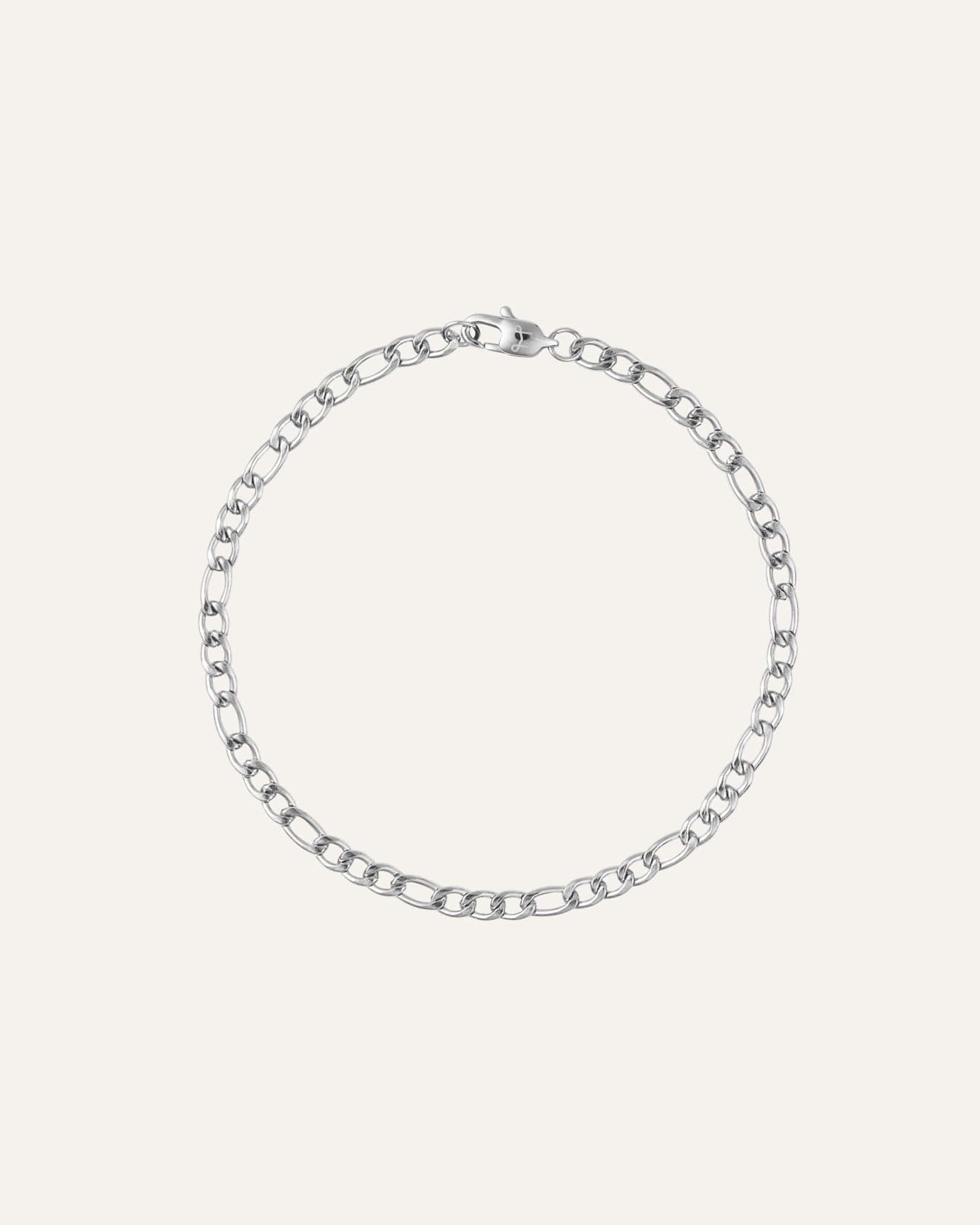 De Figaro Bracelet is een armband met een klassiek schakeldesign, perfect voor elke gelegenheid. Draag hem solo of combineer met de Figaro Necklace voor een samenhangende stijl. Gemaakt van roestvrij staal met een PVD-coating – duurzaam en waterbestendig, en behoudt zijn kleur en glans in de loop der tijd. De verlengketting kan eenvoudig worden verwijderd voor een aangepaste pasvorm.