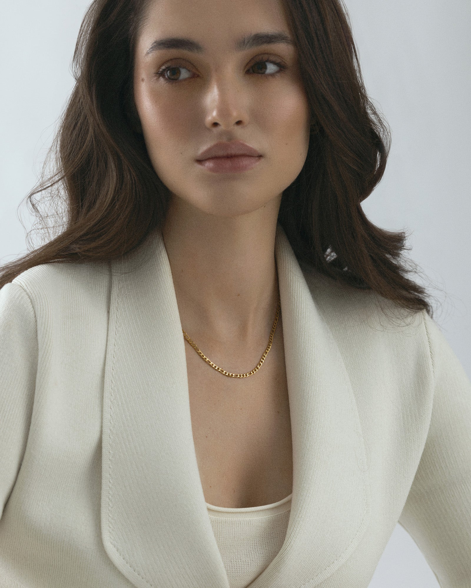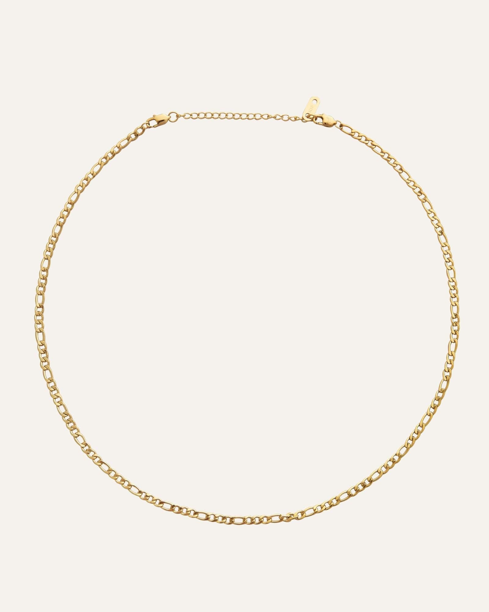 De Figaro Necklace is een ketting met een klassiek schakeldesign. Combineer met de Figaro Bracelet voor een stijlvolle, gecoördineerde look. Gemaakt van roestvrij staal met een PVD-coating – duurzaam en waterbestendig, en behoudt zijn kleur en glans in de loop der tijd. De verlengketting kan eenvoudig worden verwijderd voor een aangepaste pasvorm.