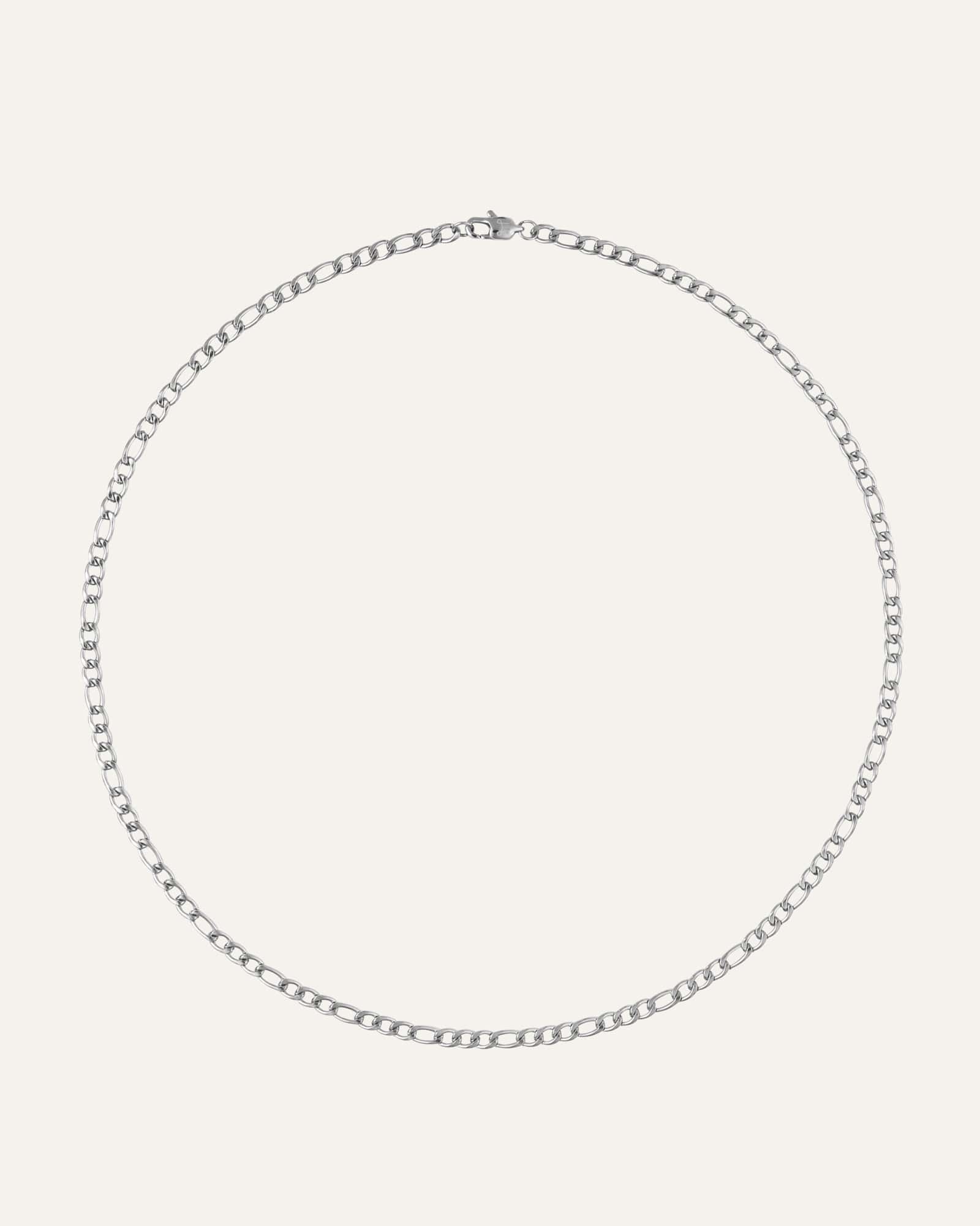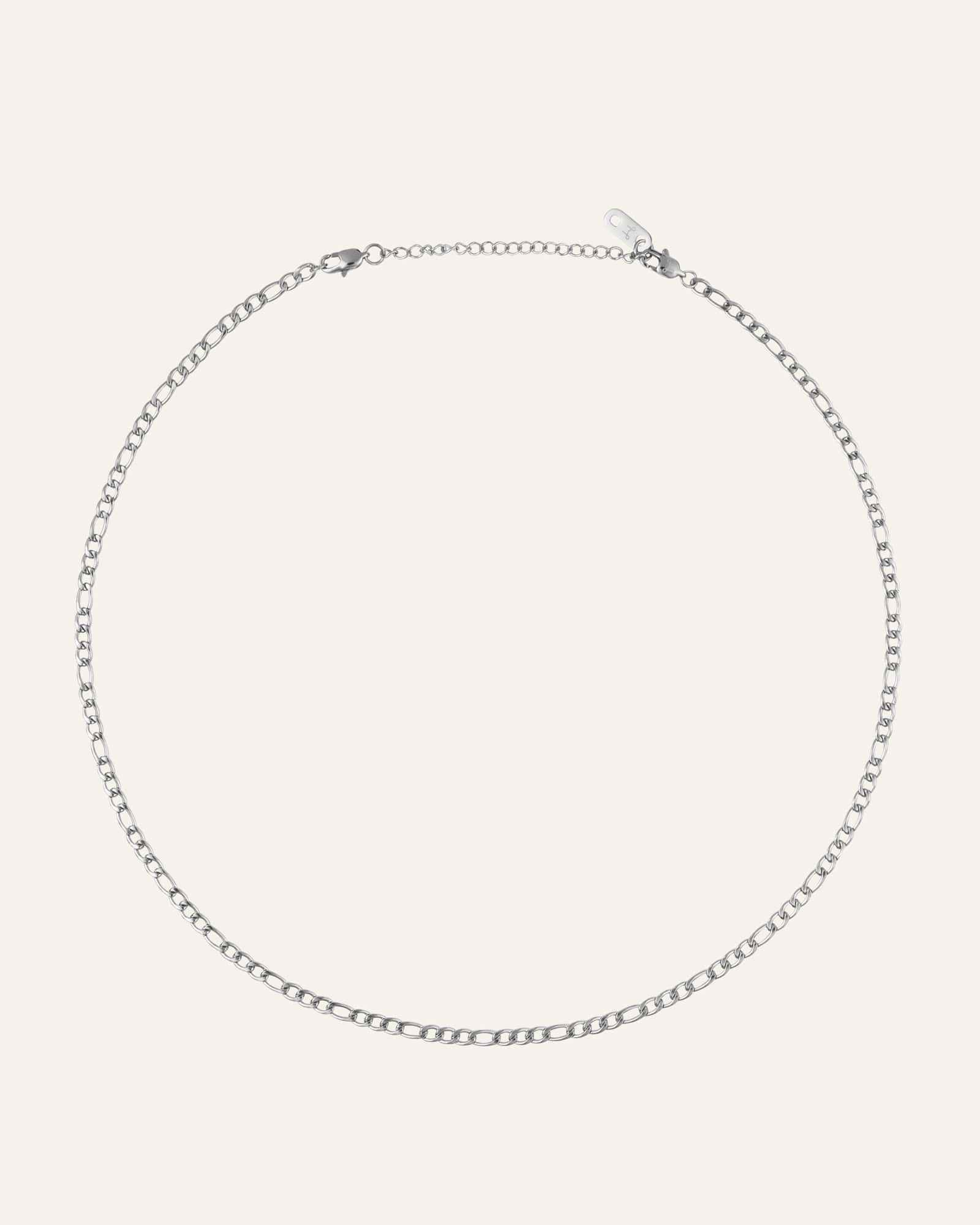 De Figaro Necklace is een ketting met een klassiek schakeldesign. Combineer met de Figaro Bracelet voor een stijlvolle, gecoördineerde look. Gemaakt van roestvrij staal met een PVD-coating – duurzaam en waterbestendig, en behoudt zijn kleur en glans in de loop der tijd. De verlengketting kan eenvoudig worden verwijderd voor een aangepaste pasvorm.