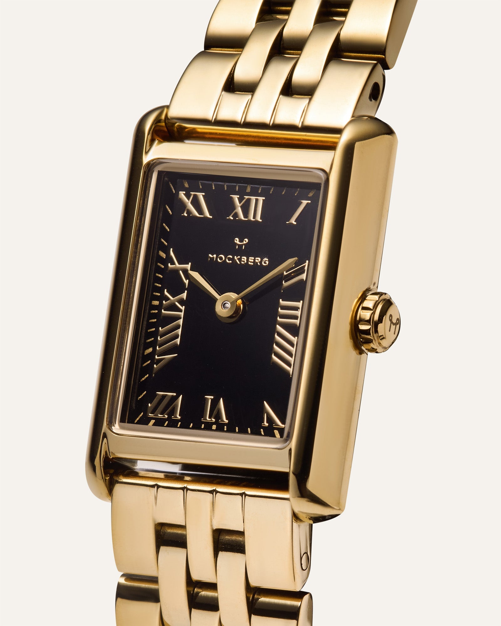 Onze bestseller – nu met een zwarte wijzerplaat! De rechthoekige kast van massief roestvrij staal meet 19 x 28 mm en omlijst een elegante wijzerplaat met Romeinse cijfers. Uitgerust met een Japans uurwerk en een klassieke schakelband – een tijdloos accessoire voor elke gelegenheid.