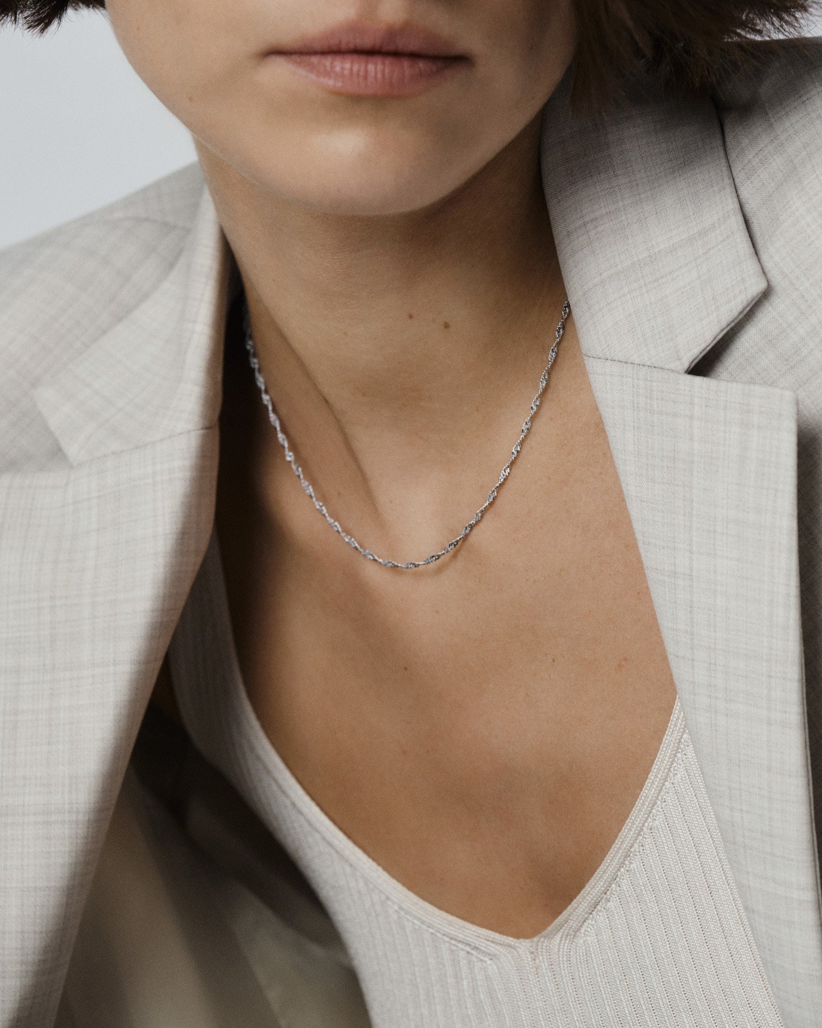 De Twirl Necklace heeft een dun, gedraaid schakeldesign – perfect om alleen te dragen of in laagjes met andere kettingen. Gemaakt van roestvrij staal met een PVD-coating – duurzaam en waterbestendig, zodat het zijn kleur en glans behoudt. De verlengketting kan eenvoudig worden verwijderd voor een gepersonaliseerde pasvorm.